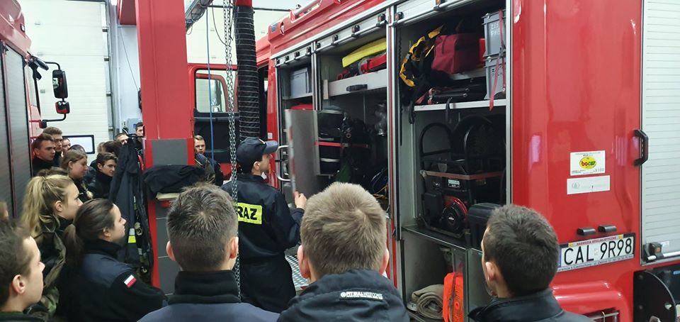 W dniu 09.01.2020r uczniowie klasy pierwszej i drugiej mundurowej odwiedzili placówkę Państwowej Straży Pożarnej w Aleksandrowie Kujawskim. Uczniowie mieli okazję zapoznać się ze sprzętem pożarniczym używanym na co dzień przez strażaków PSP w różnego rodzaju akcjach ratunkowych. Zapoznani zostali z zagrożeniami jakie mogą spotkać każdego korzystając z różnego rodzaju akwenów wodnych zarówno latem jak i zimą oraz mogli zobaczyć jak wygląda praca w w/w placówce. Były to bardzo ciekawe zajęcia i na pewno nie ostatnie!! Dziękujemy bardzo wszystkim obecnym strażakom na zajęciach za zaangażowanie i pomoc w szkoleniu.