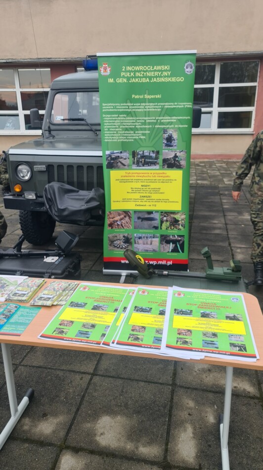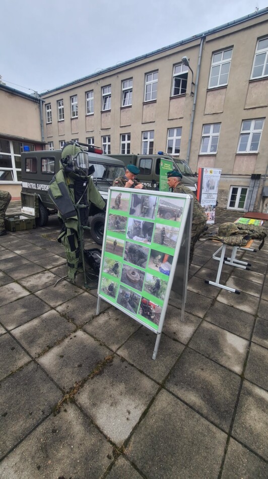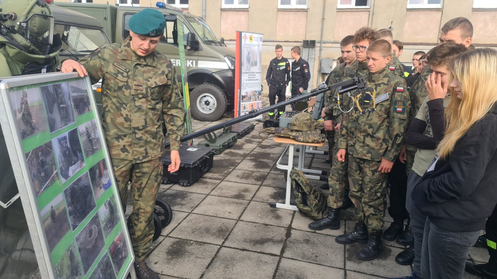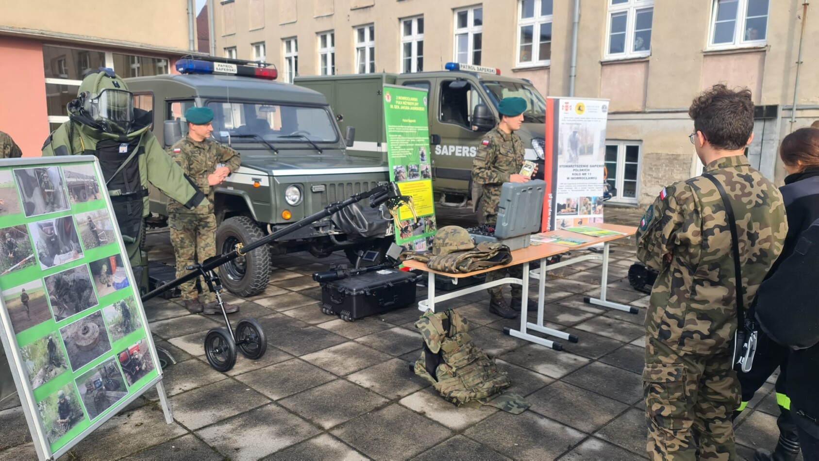 W odpowiedzi na zaproszenie Dyrekcji Mundurowej Szkoły Technicznej w Aleksandrowie Kujawskim odwiedzili nas saperzy z 2 Inowrocławskiego Pułku Inżynieryjnego im. gen. Jakuba Jasińskiego. Kadeci mogli zobaczyć pokazy saperskie, zapoznać się ze sprzętem oraz uczestniczyli w cyklu wykładów.