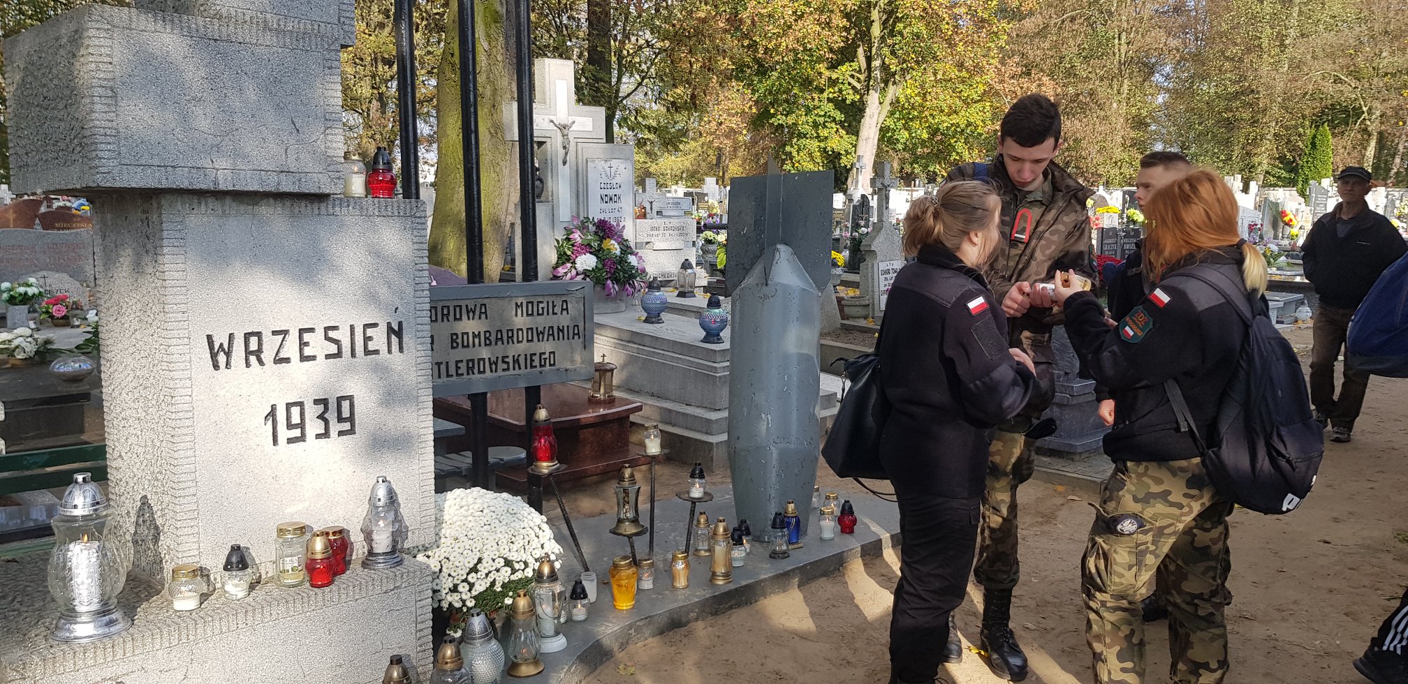 na cmentarzu katolickim w Aleksandrowie Kujawskim. Zgodnie z tradycją uczniowie posprzątali grobowce oraz złożyli znicze by zaznaczyć wyrazy szacunku wobec zmarłych a także by kultywować patriotyzm i podtrzymanie tradycji.