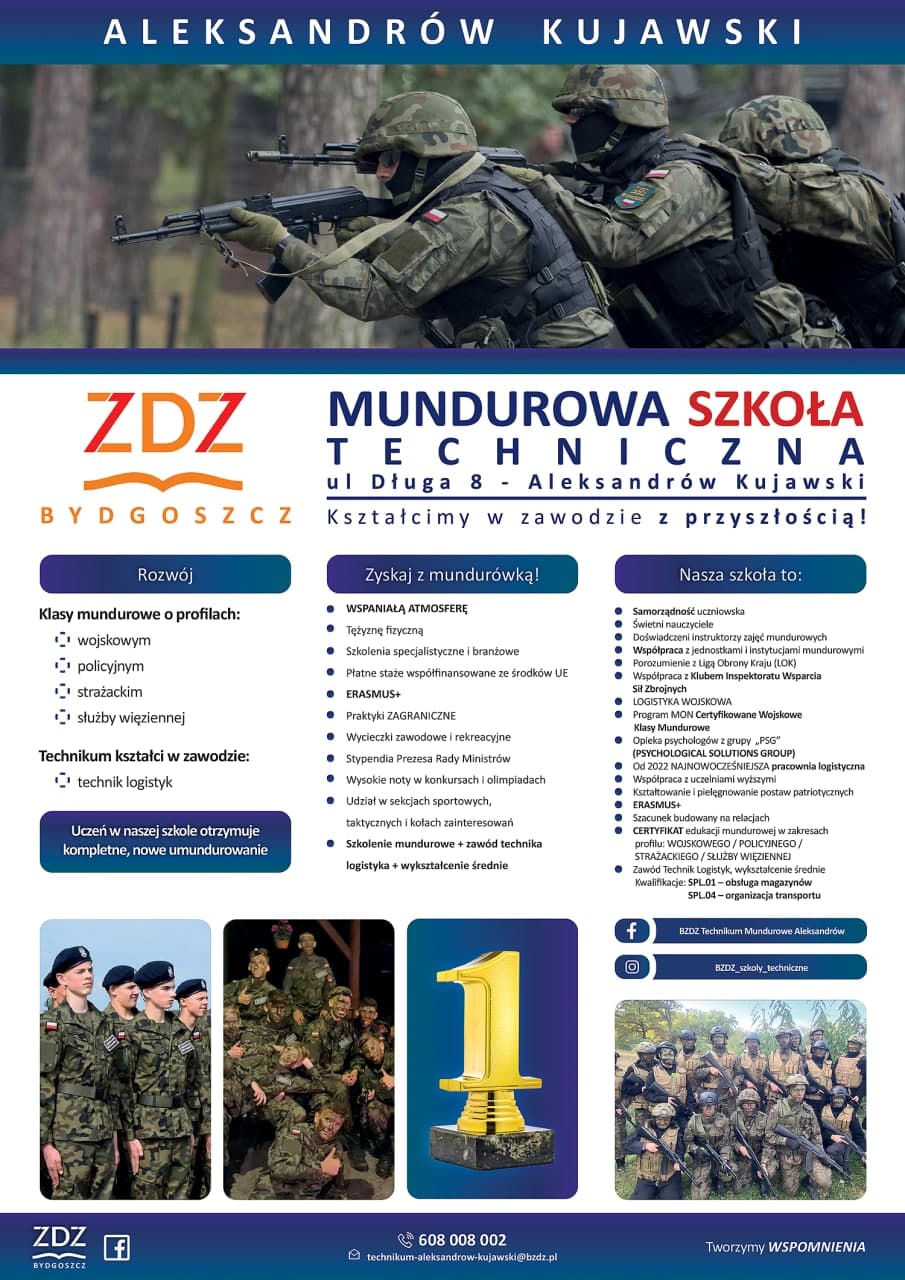 Kadeci z Technikum Mundurowego włączają się w wiele akcji wspierających uchodźców z Ukrainy, współpracując z wieloma lokalnymi instytucjami m.in. z OSP z Aleksandrowa Kujawskiego