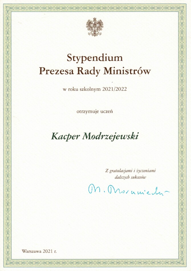 Ciężka praca przynosi zawsze pozytywne efekty. Uczniowie z naszej szkoły po raz pierwszy weszli w poczet stypendystów Premiera Polski.
