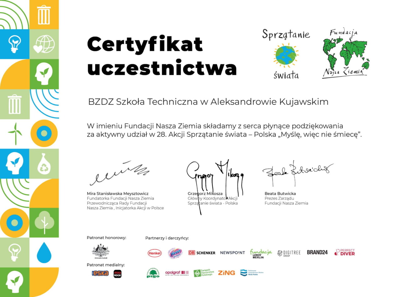 Zdecydowanie chwalimy się godnymi naśladowania postawami naszych uczniów. Zachowania proekologiczne są niezwykle cenne dla nas i przyszłych pokoleń. Podziękowania kierujemy w stronę Pani Pedagog Małgorzaty Juchniewicz za wkład w profilaktykę ekologiczną wśród młodzieży szkolnej oraz włączanie naszej szkoły w wydarzenia o zasięgu ogólnopolskim.