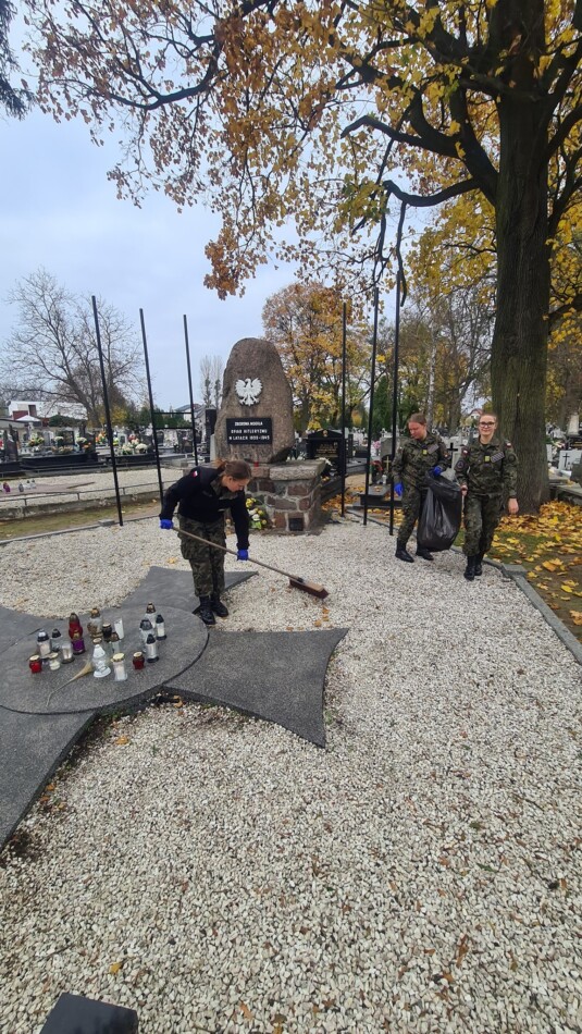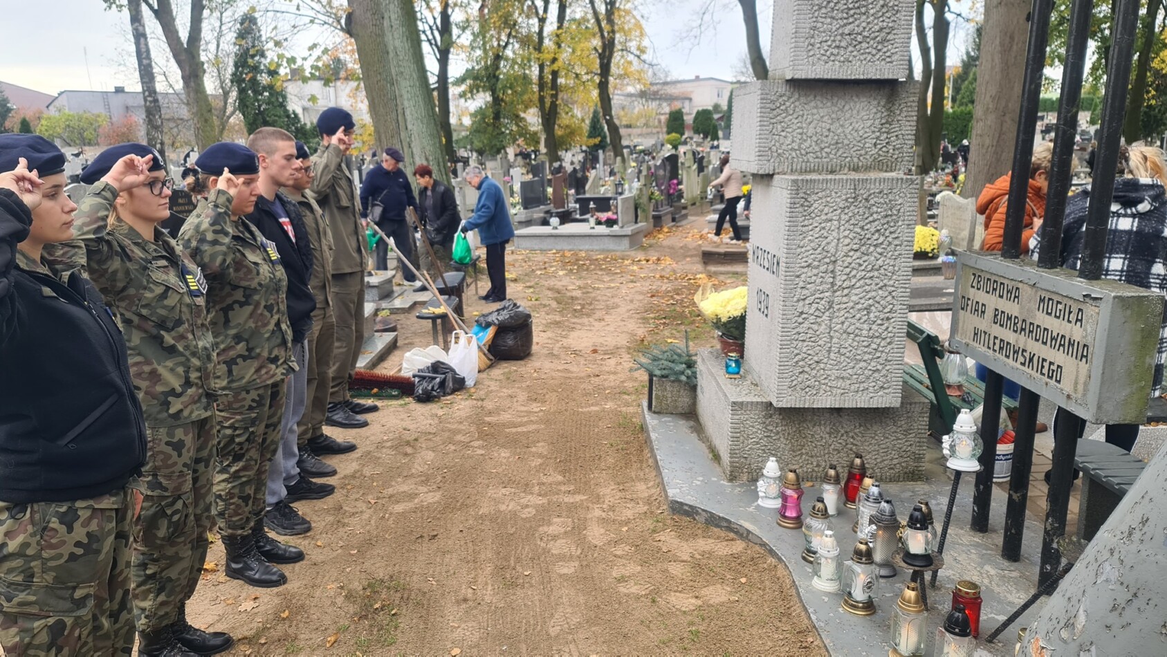 Uczniowie klasy IV CWKM BZDZ Technikum Mundurowego w Aleksandrowie Kujawskim wraz z nauczycielem Edukacji Wojskowej kpt. rez. Arturem Wiszniewskim udali się celem posprzątania, wyczyszczenia oraz ustawienia zniczy i kwiatów na grobach, którymi od kilku lat szkoła się opiekuje. Uczniowie oddali hołd i uczcili pamięć przy grobach Żołnierzy Nieznanych, przy Mogile Zbiorowej Ofiar Hitleryzmu oraz Ofiar Bombardowania Hitlerowskiego w latach 1939-1945.