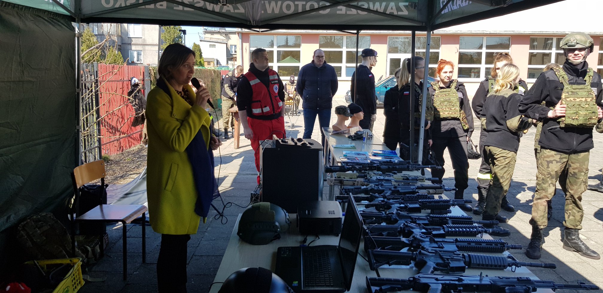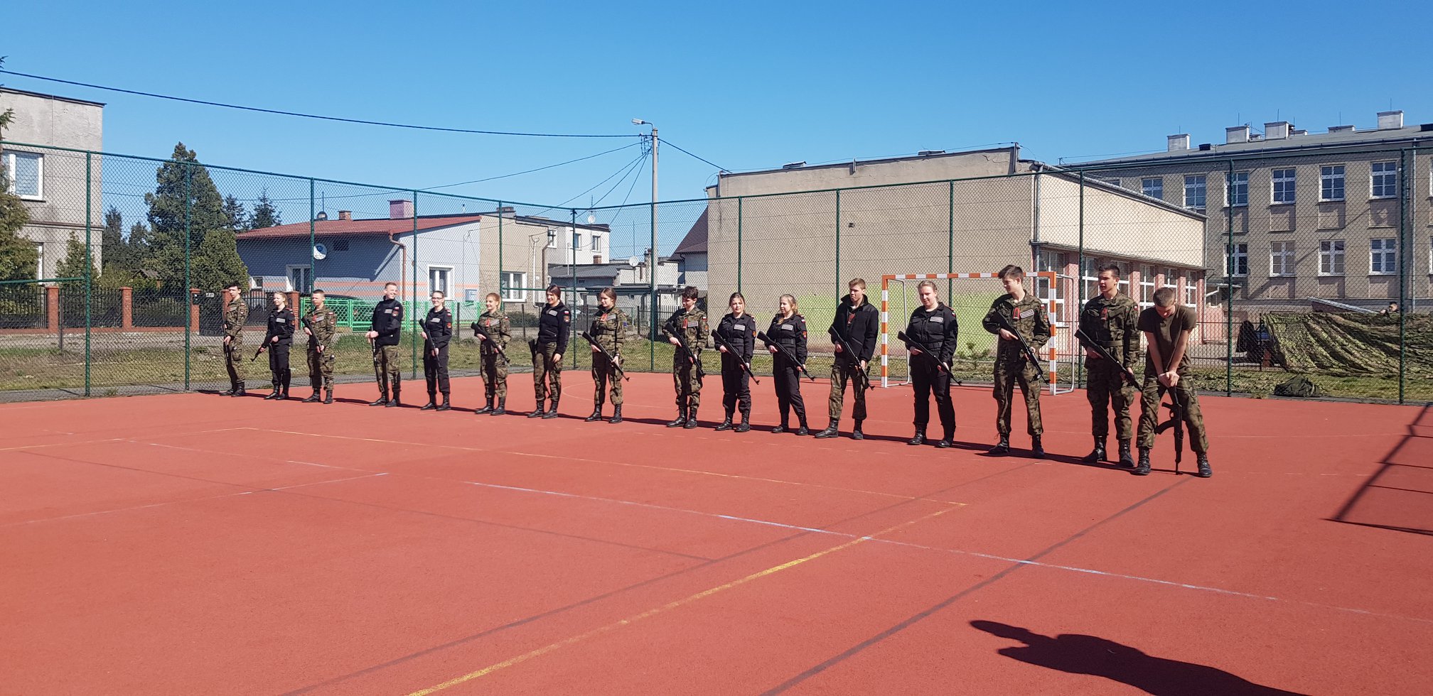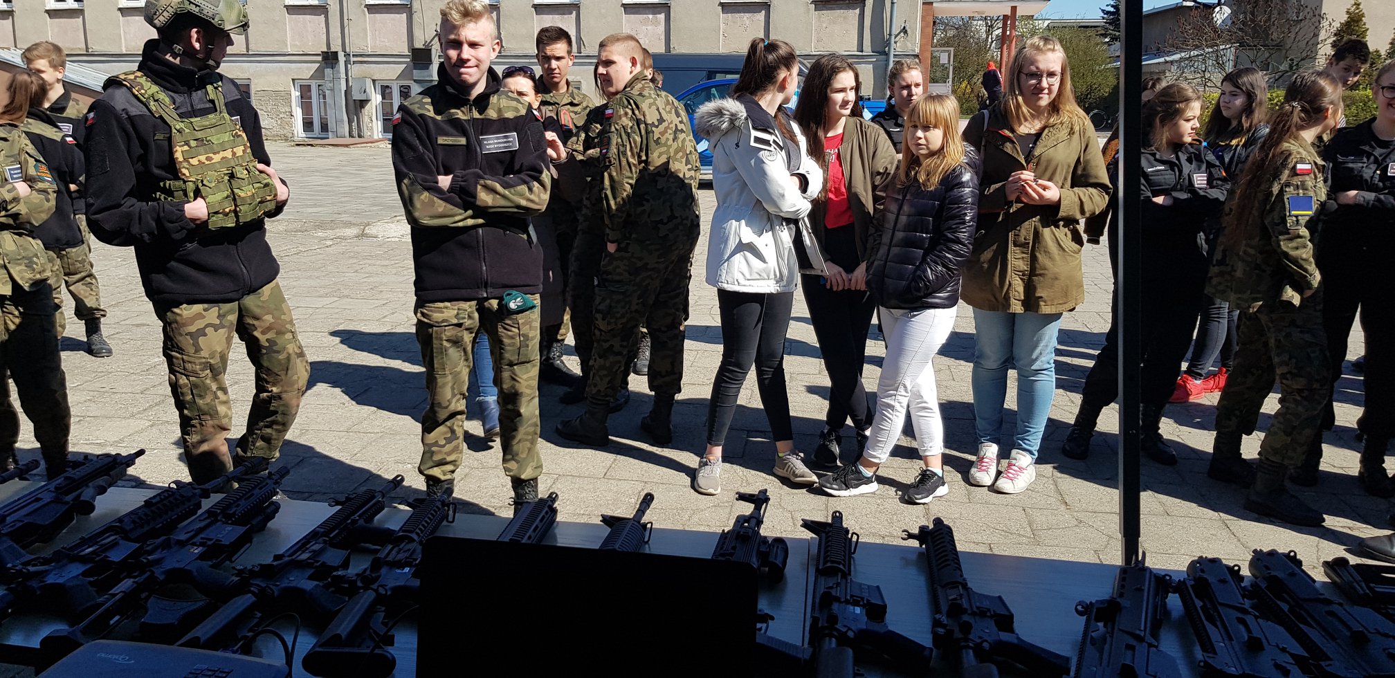 W dniu 15.04. 2019 odbyły się w naszej szkole drzwi otwarte podczas których uczniowie klas gimnazjalnych i podstawowych mogli zapoznać się z funkcjonowaniem naszej szkoły oraz dowiedzieć się czegoś więcej na temat pilotażu klas mundurowych MON i profili jakie są proponowane. Uczniowie prezentowali się w różnego rodzaju pokazach taktyki, formowania szyków bojowych, pokazu ratownictwa we współpracy z OSP Aleksandrów a także pokazem pierwszej pomocy, i zatrzymywania niebezpiecznych przestępców. Podczas drzwi otwartych towarzyszyli nam przedstawiciele 8 BOT którzy są naszą jednostką patronacką podczas szkolenia ogólnowojskowego programu MON. Zaprezentowaliśmy również sprzęt jakim dysponujemy podczas szkolenia, oraz firmę ATMAR która zabezpiecza szkołę w sorty mundurowe.