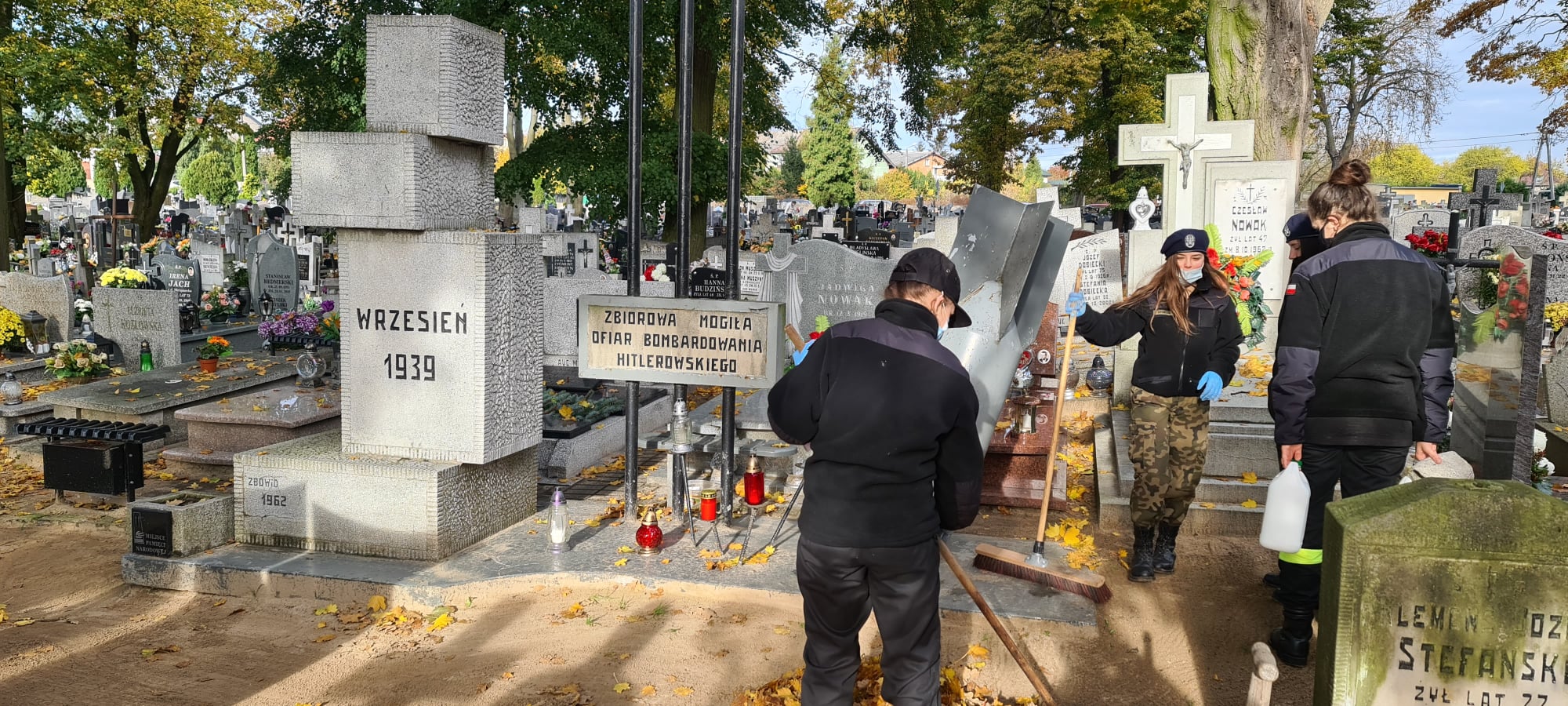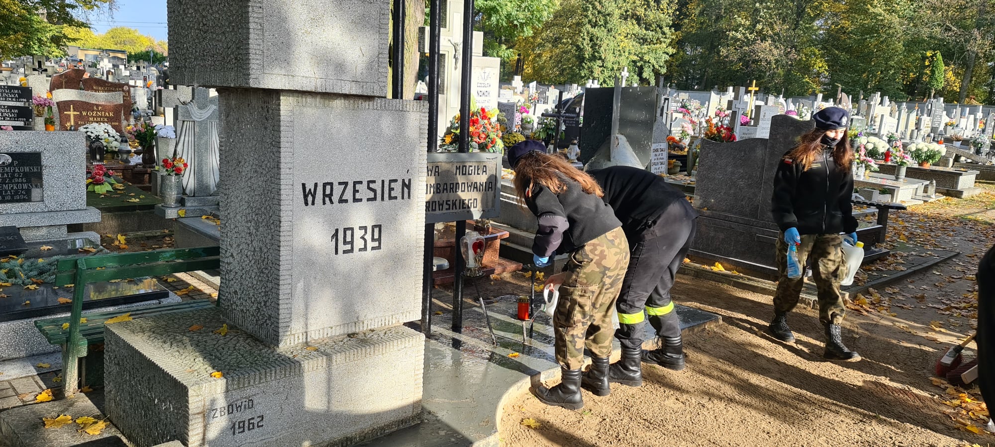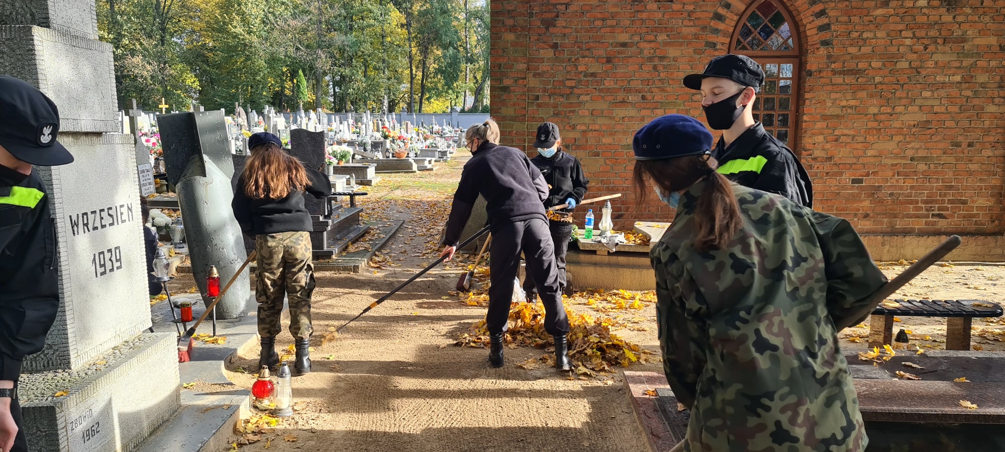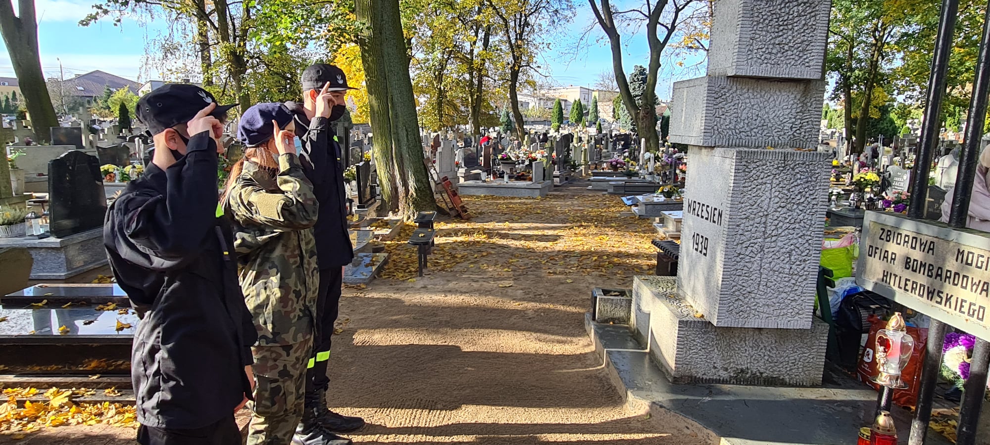 W dniu 29.10.2020r kpt. Artur Wiszniewski wraz uczniami naszej szkoły udali się na Cmentarz Parafialny w Aleksandrowie Kujawskim, by uprzątnąć groby, zapalić znicze oraz oddać hołd żołnierzom pomordowanym podczas II wojny światowej.