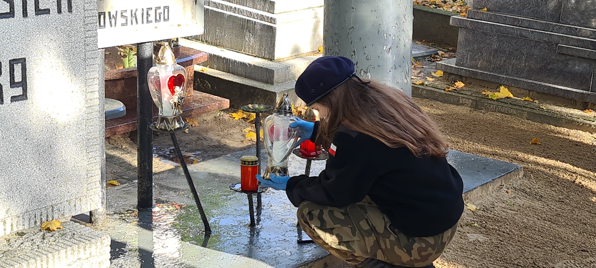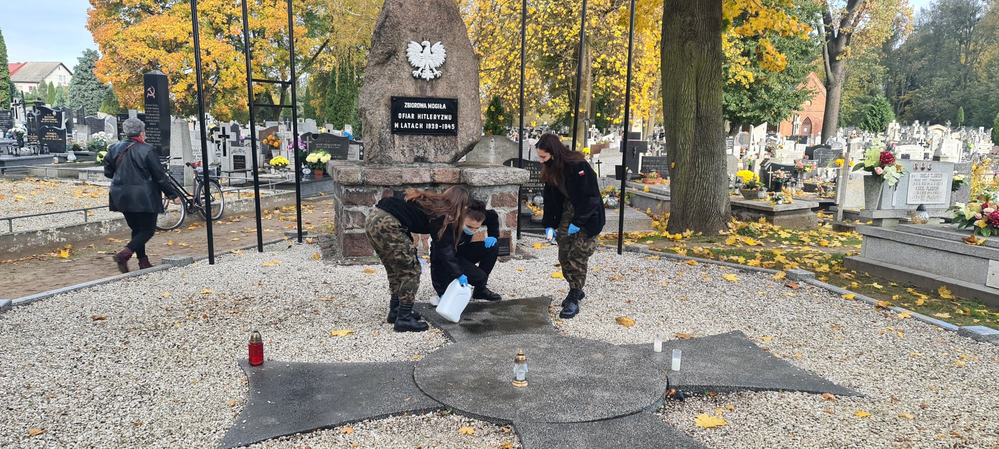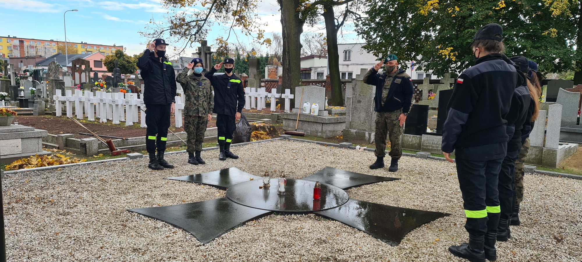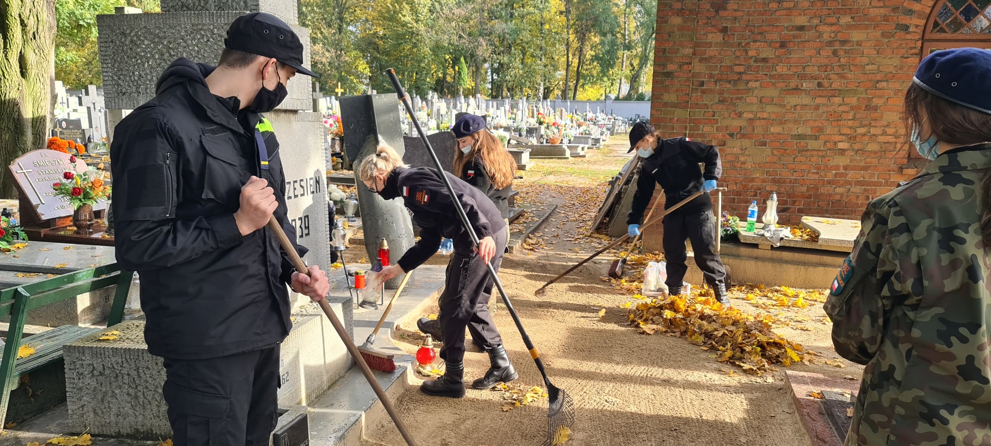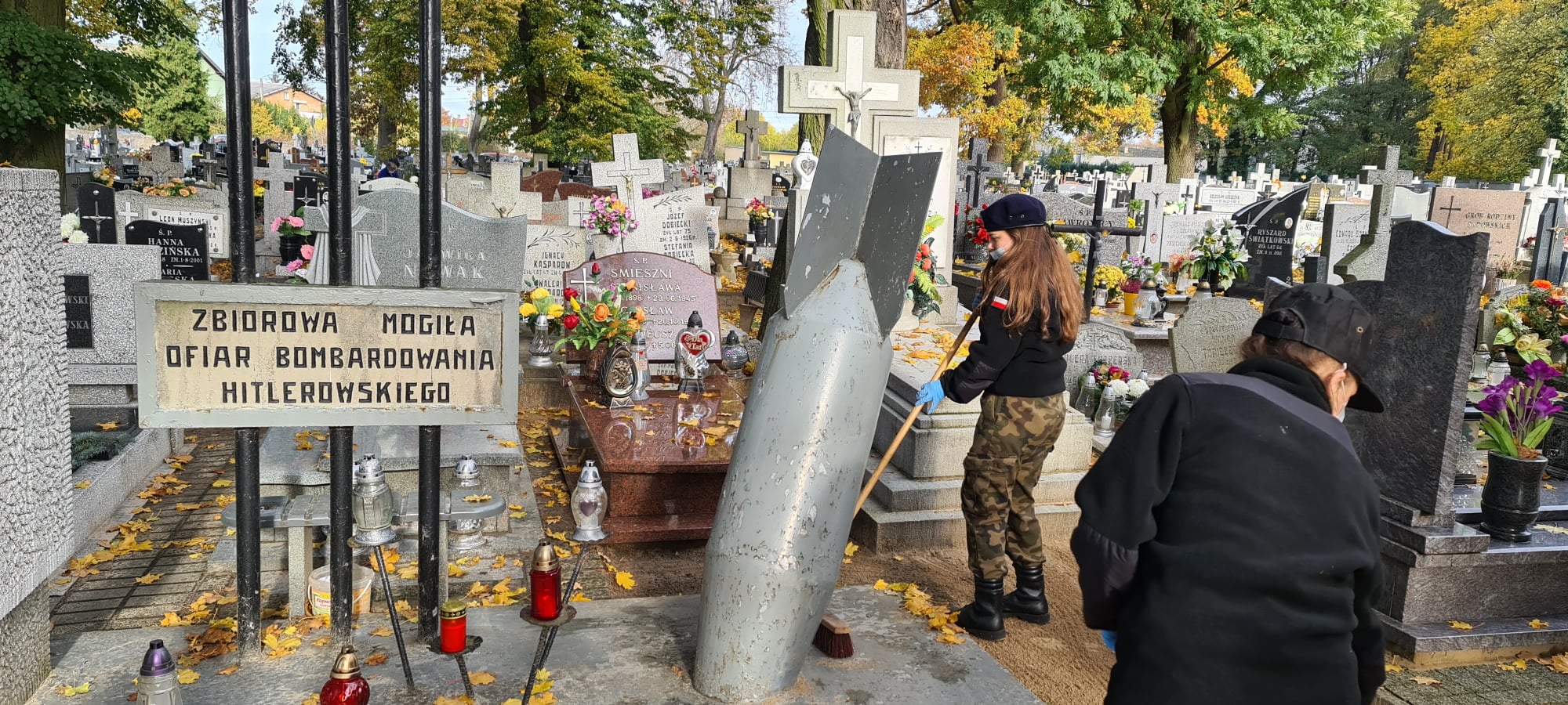 W dniu 29.10.2020r kpt. Artur Wiszniewski wraz uczniami naszej szkoły udali się na Cmentarz Parafialny w Aleksandrowie Kujawskim, by uprzątnąć groby, zapalić znicze oraz oddać hołd żołnierzom pomordowanym podczas II wojny światowej.