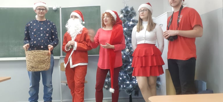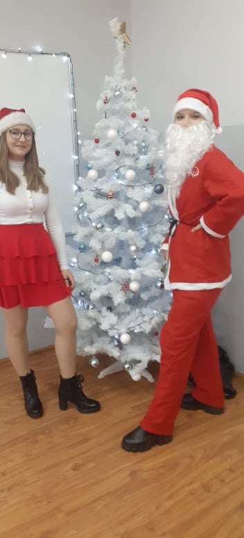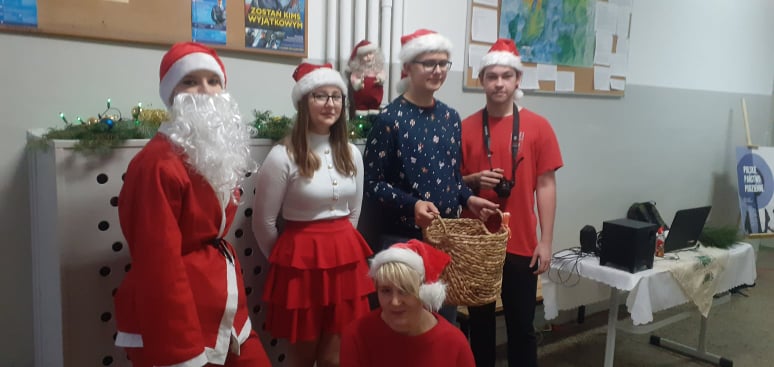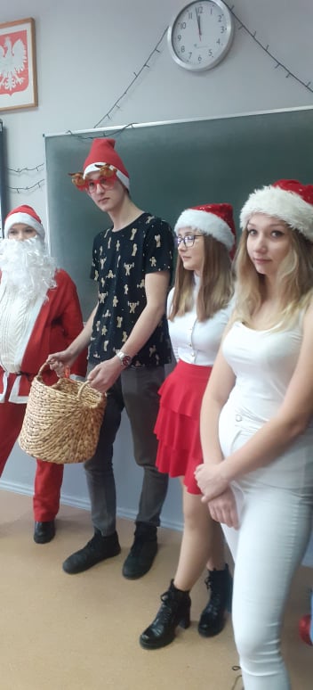 A Pan dyrektor Mariusz Fiałkowski na prośbę św. Mikołaja wyraził zgodę na zniesienie odpowiedzi ustnych i kartkówek dla osób, które wyjątkowo ubrały się na wizytę świętego!