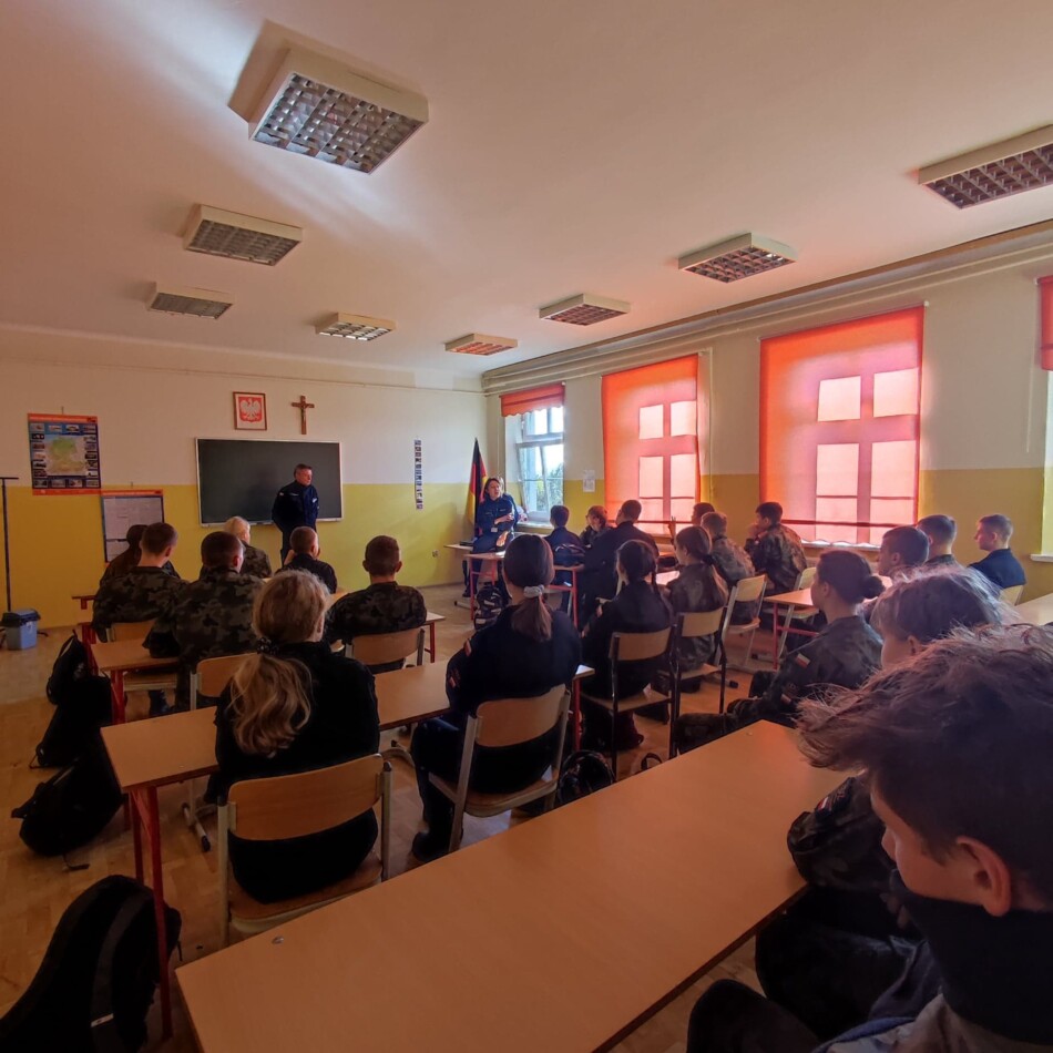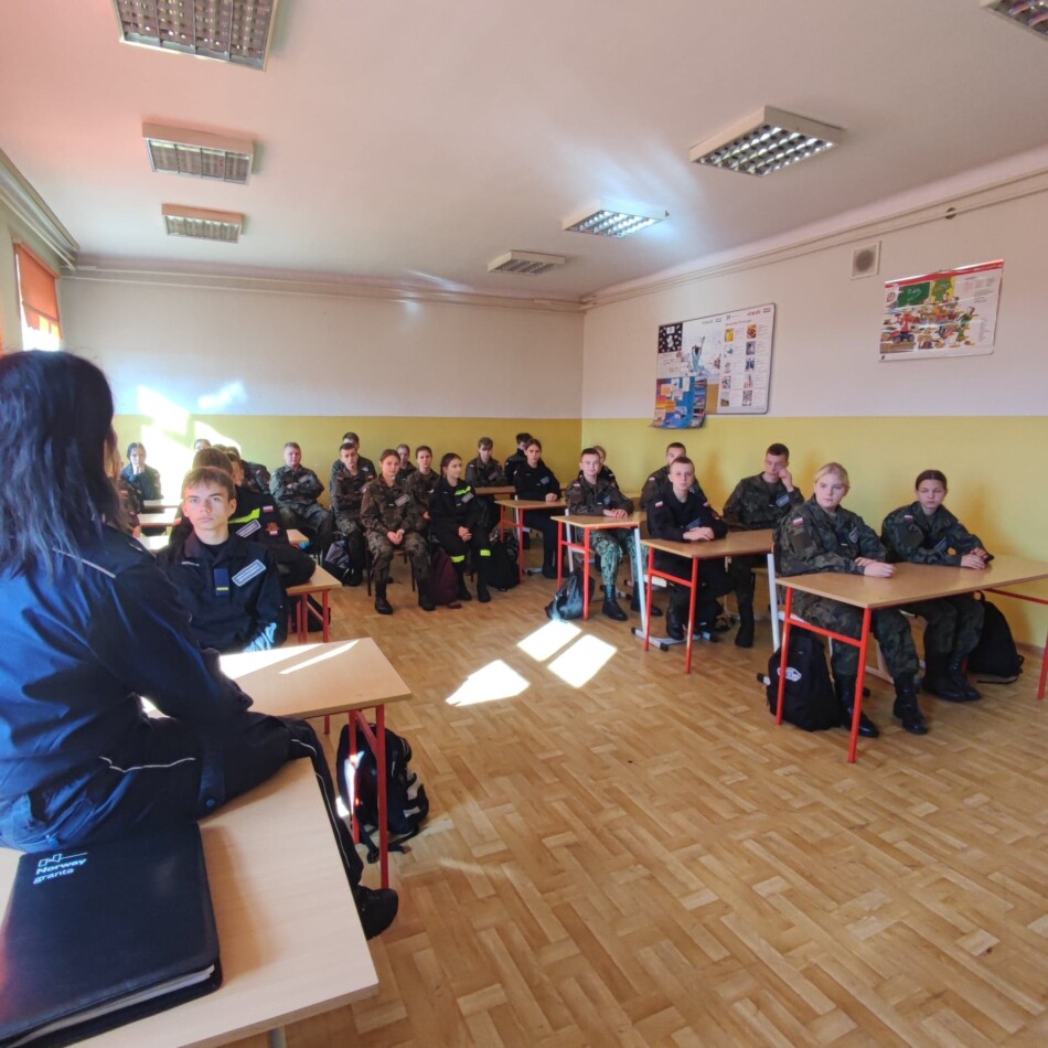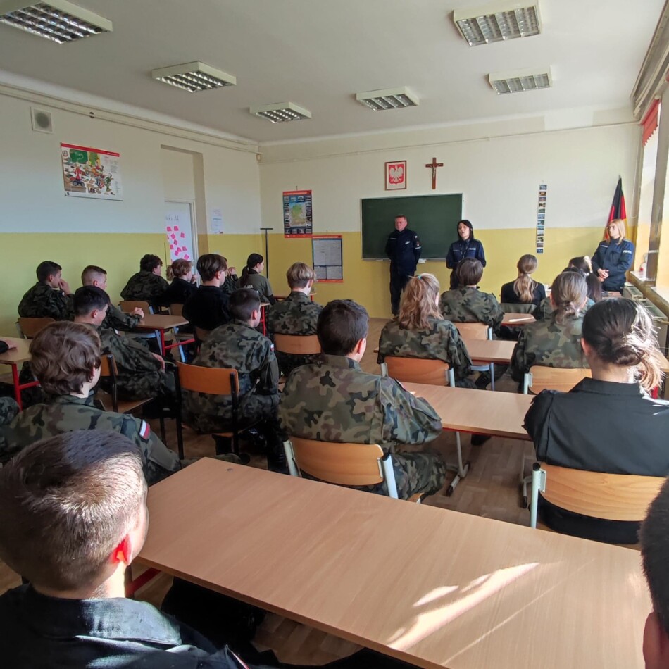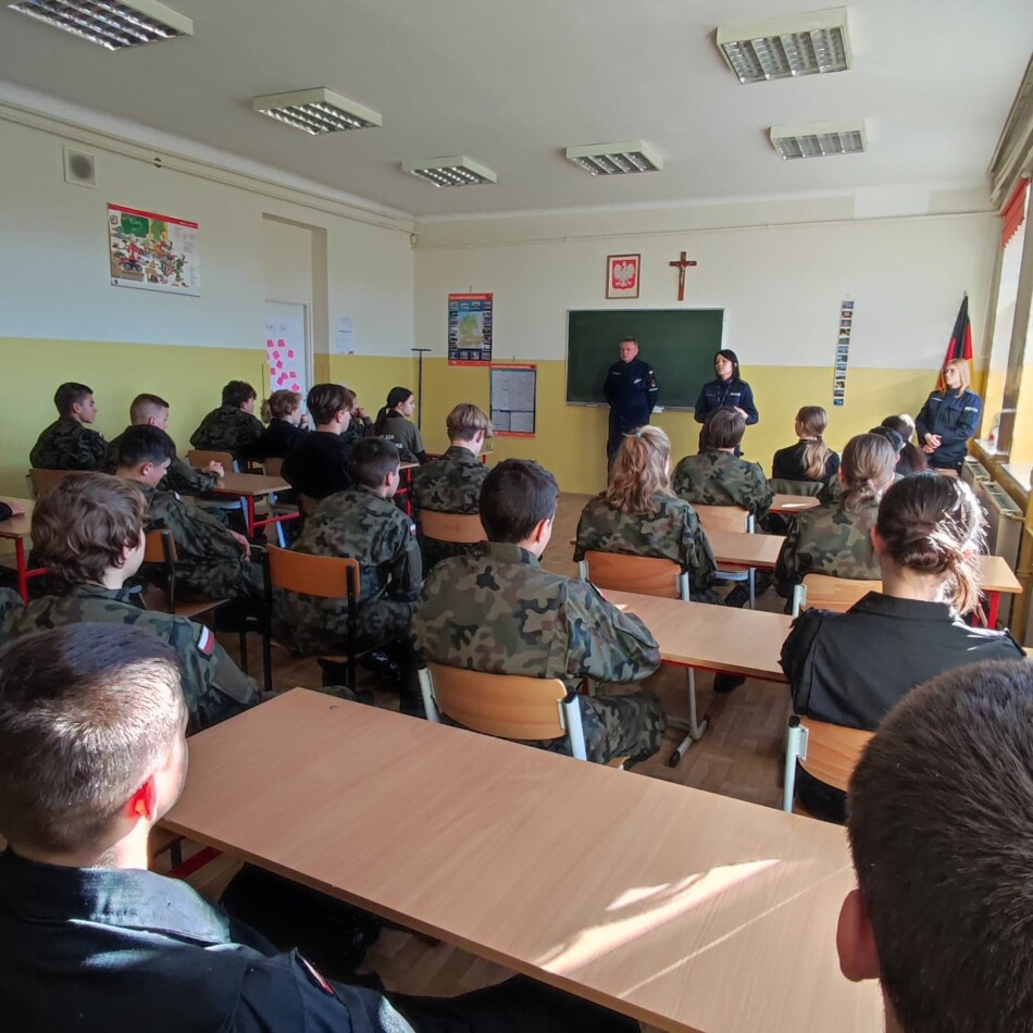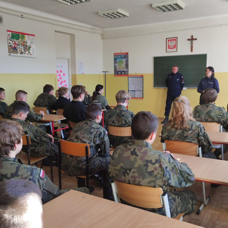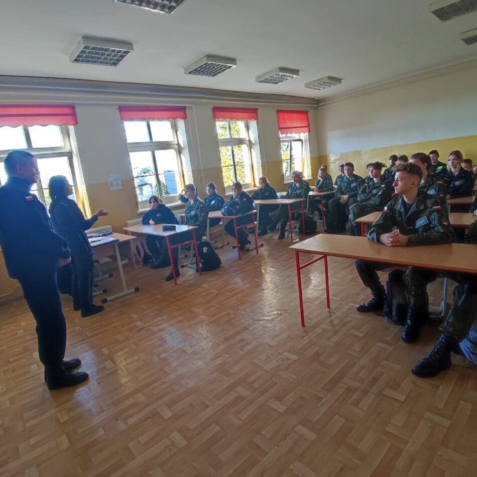 Na zaproszenie instruktora inspektora Ryszarda Żbikowskiego w dniu 20 września 2022 r. prelekcję w klasach pierwszych przeprowadziły: