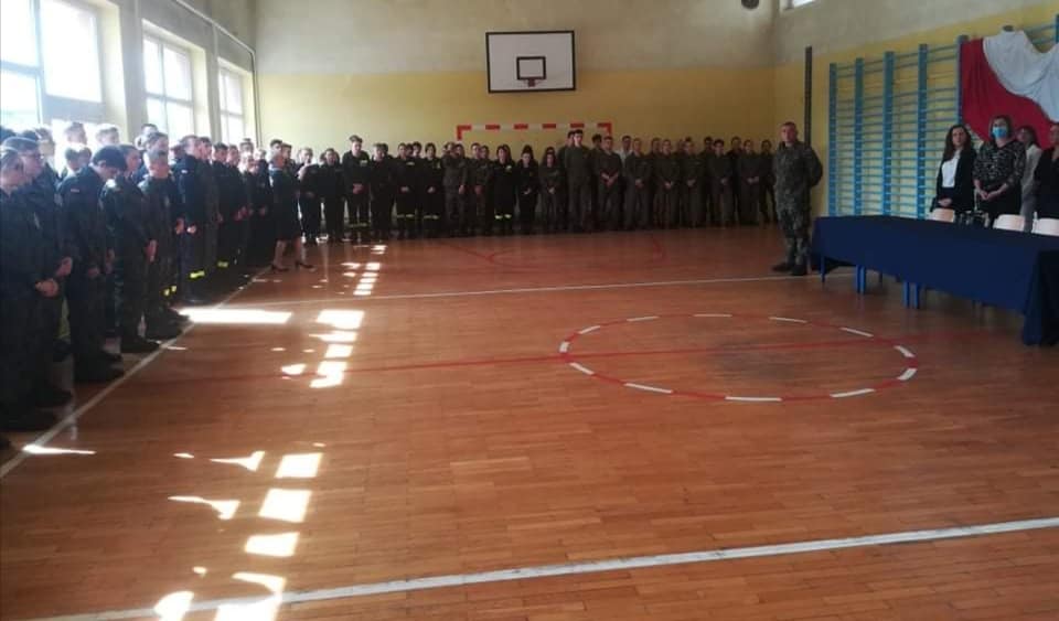 W uroczystości udział wzięli: Dyrekcja szkoły, uczniowie aleksandrowskiej mundurówki, wychowawcy, przedstawiciele grona pedagogicznego, przedstawiciel służb mundurowych, rodzice.
