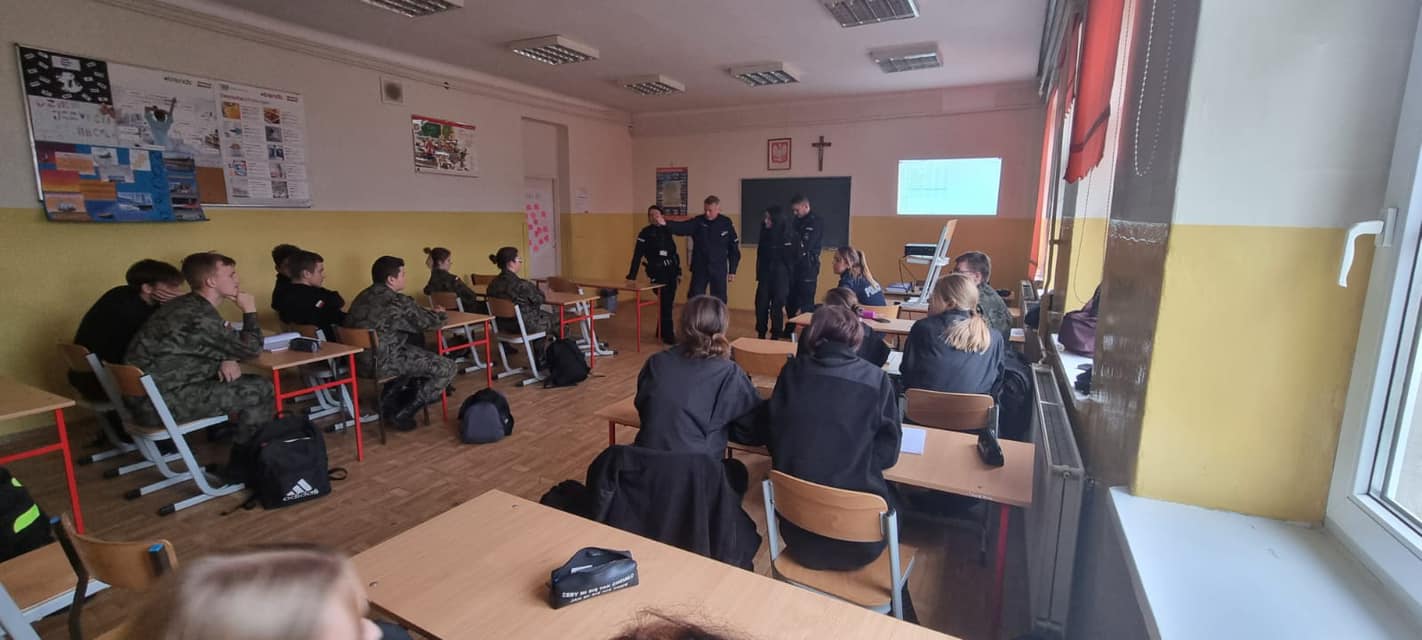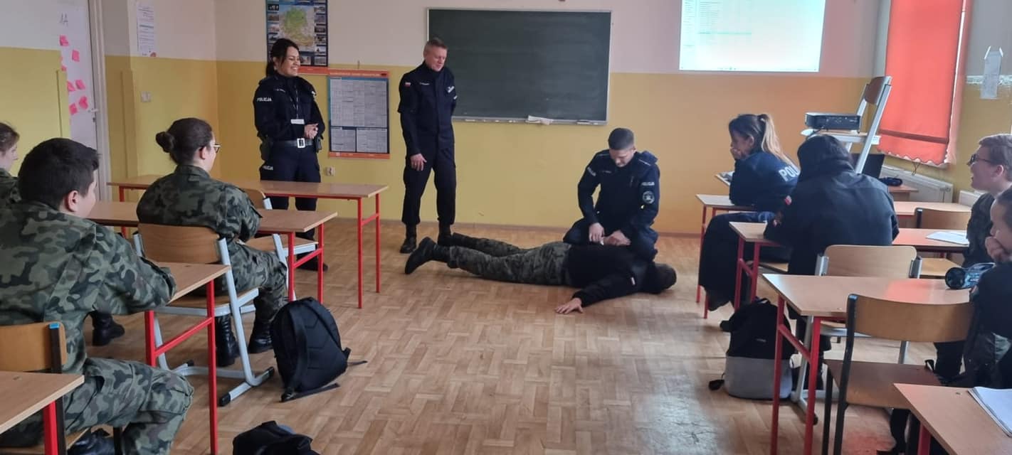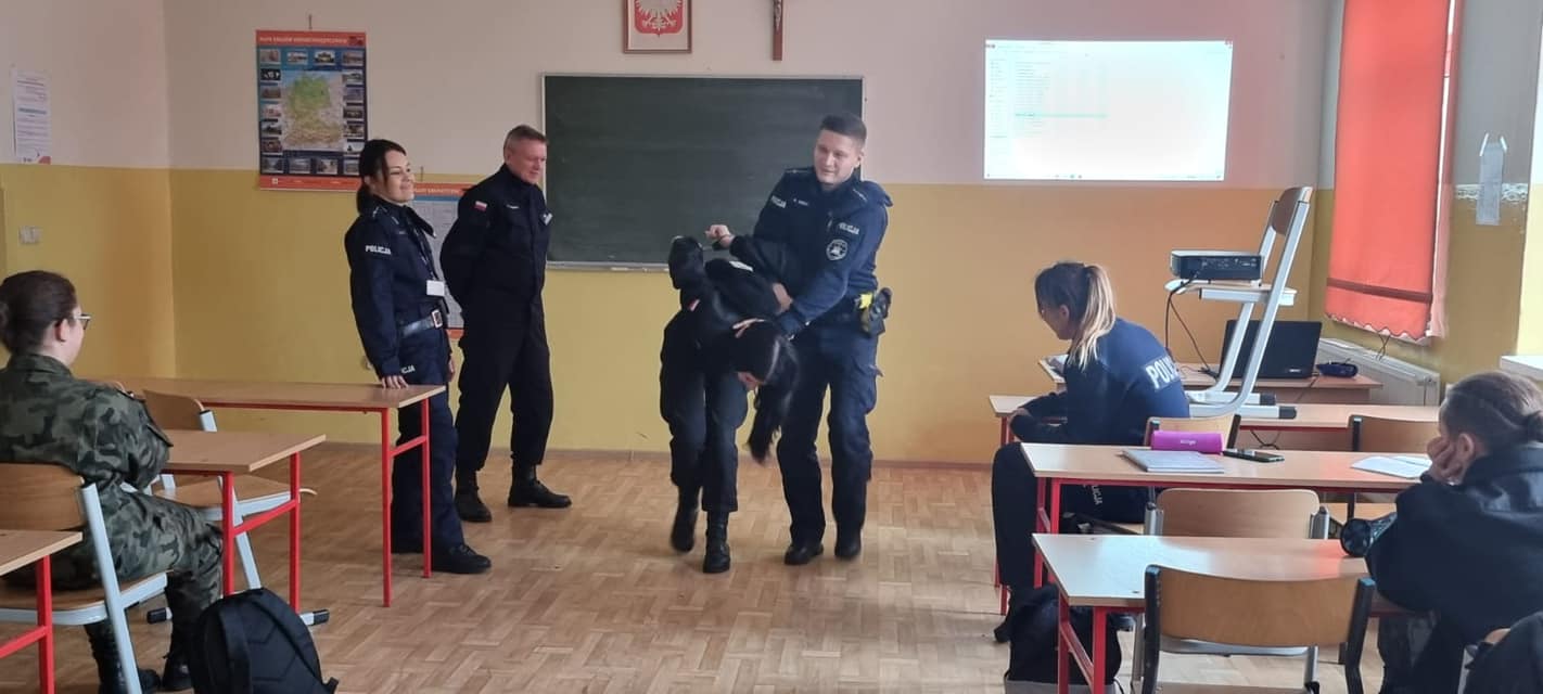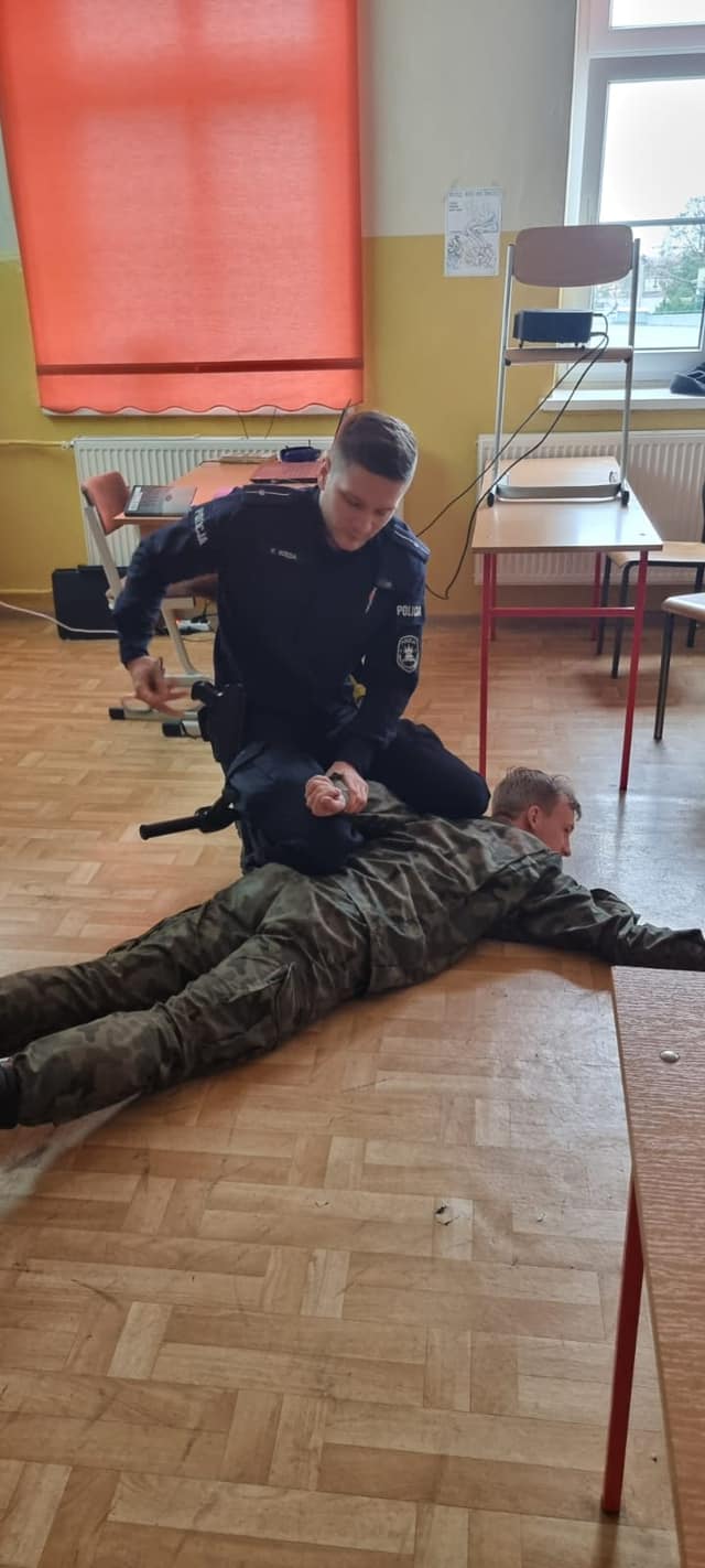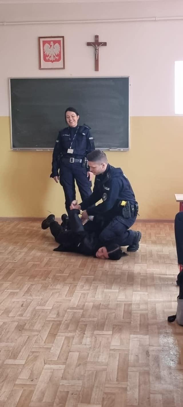 Zajęcia praktyczne dla klas 2 i 3 ze stosowania środków przymusu bezpośredniego prowadzone przez funkcjonariuszy z KPP w Aleksandrowie Kujawskim. 👮🏻‍♂️👮🏻‍♀️🚓