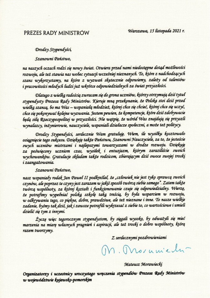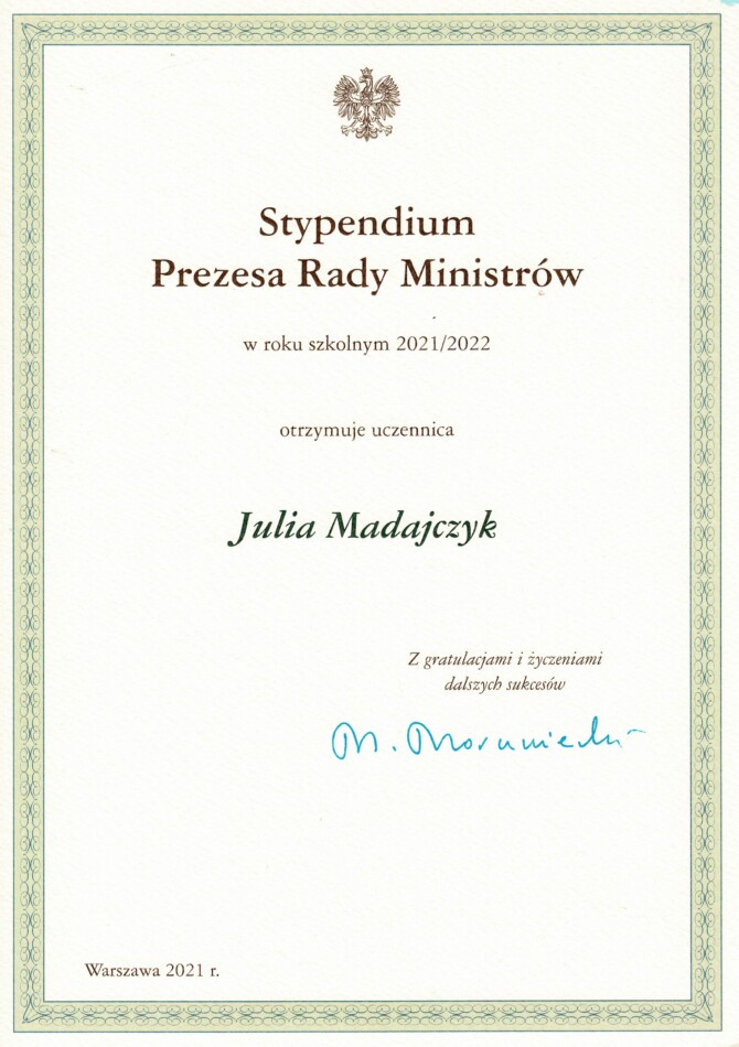 Ciężka praca przynosi zawsze pozytywne efekty. Uczniowie z naszej szkoły po raz pierwszy weszli w poczet stypendystów Premiera Polski.