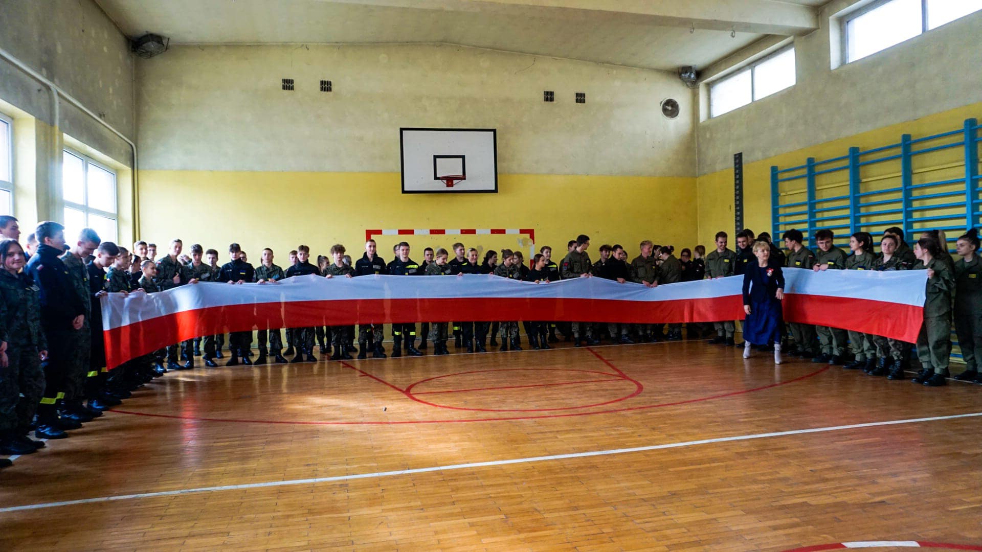 Pan kpt. Artur Wiszniewski o godzinie 11:11 wezwał do wspólnego odśpiewania „Mazurka Dąbrowskiego” w ramach ogólnopolskiej akcji #SzkołaDoHymnu