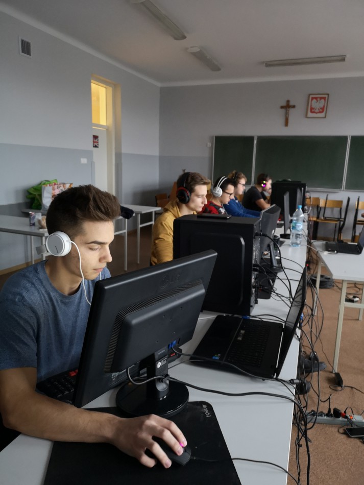 Dnia 7 grudnia 2018 r. w naszej szkole obyły się zawody w grę Counter-Strike: Global Offensive. Organizatorami turnieju była klasa III. U dział w turnieju brały klasy I, II i III. Turniej był rozgrywany w systemie każdy z każdym do jednego zwycięstwa. Rozgrywki było można oglądać w specjalnie przygotowanej do tego klasie. Pierwszy mecz odbył się pomiędzy klasą I i II na mapie de_cache. Klasa II świetnie poradziła sobie po stronie antyterrorystów, dzięki czemu wynik do połowy to aż 15:0. Mecz zakończył się bardzo pewnym zwycięstwem 16:0. Następny mecz rozegrała klasa III z I na mapie de_inferno. Po lekkich problemach po stronie atakującej zwyciężyła klasa III. Ostatni, finałowy mecz odbył się pomiędzy klasą II i III na mapie de_mirage i decydował on o tym, która klasa zostanie mistrzem szkoły. Mecz był w miarę wyrównany jednak klasie III zabrakło pewności siebie i ulegli klasie II, która wygrała cały turniej. Gratulujemy klasie II zwycięstwa i dziękujemy pozostałym klasom za udział w rozgrywkach i uczniom za gorący doping.