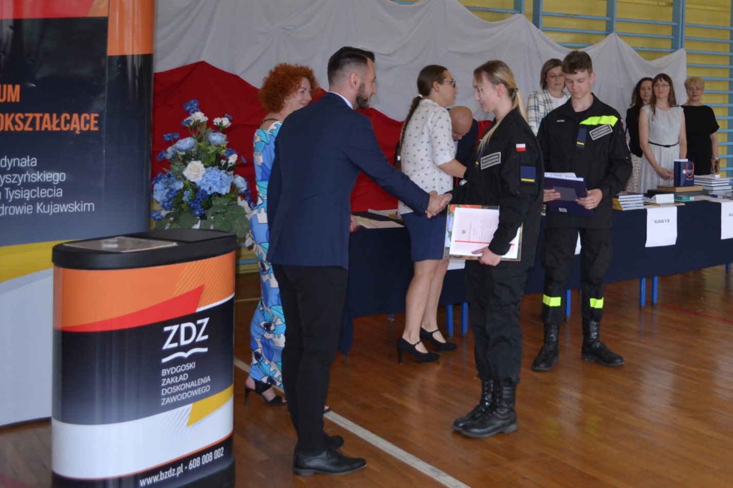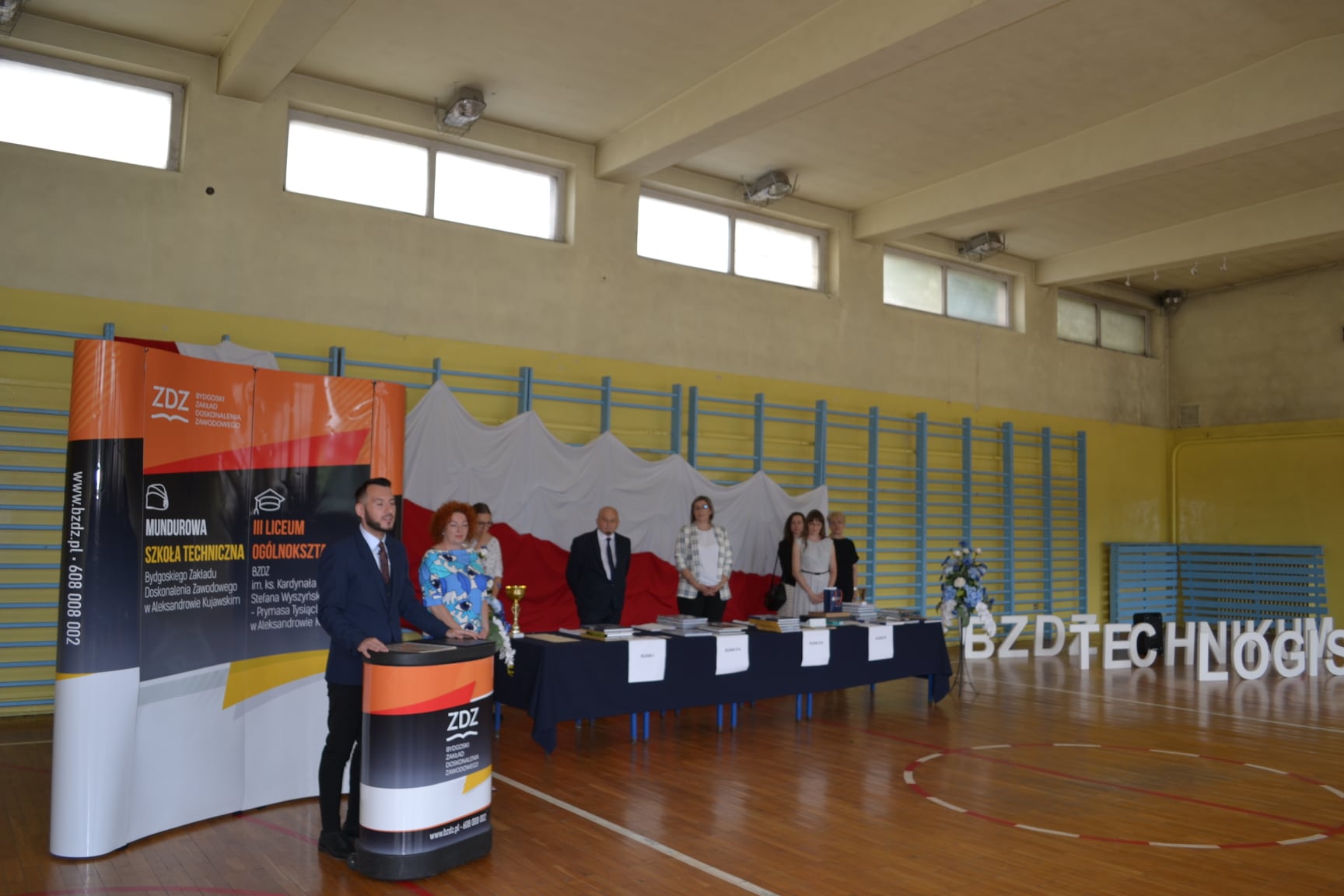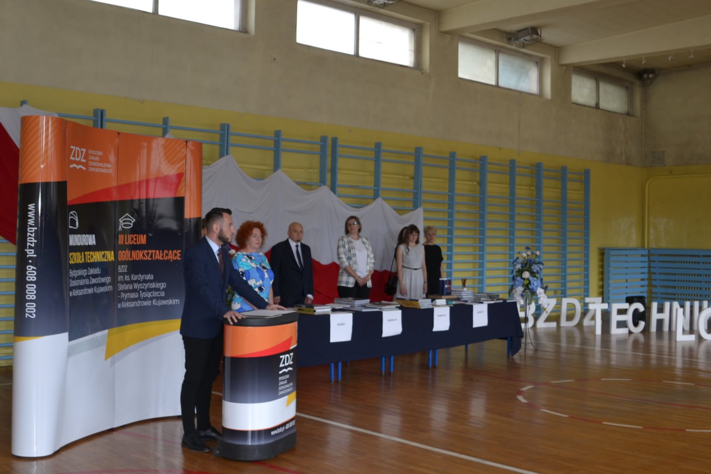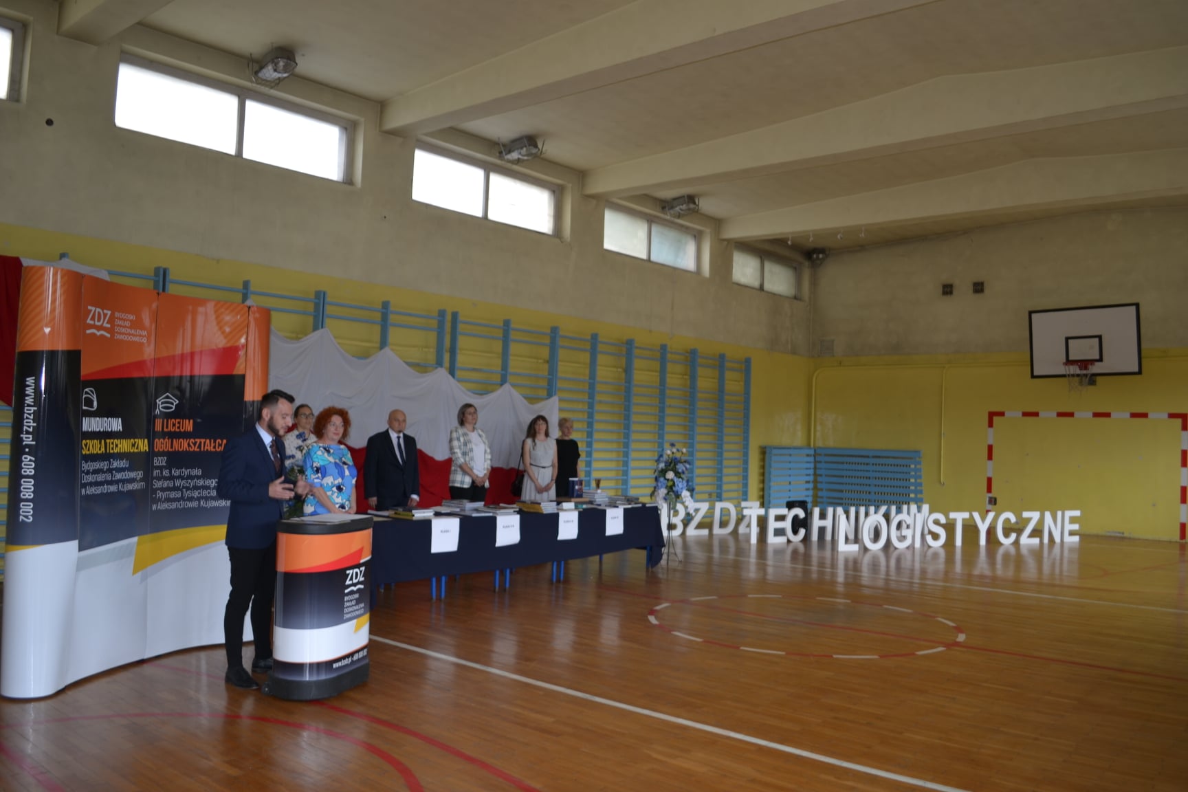 Pan Dyrektor Mariusz Fiałkowski wygłosił okolicznościowe przemówienie oraz przeczytał list od Pana Pawła Duzdowskiego – Prezesa Bydgoskiego Zakładu Doskonalenia Zawodowego.