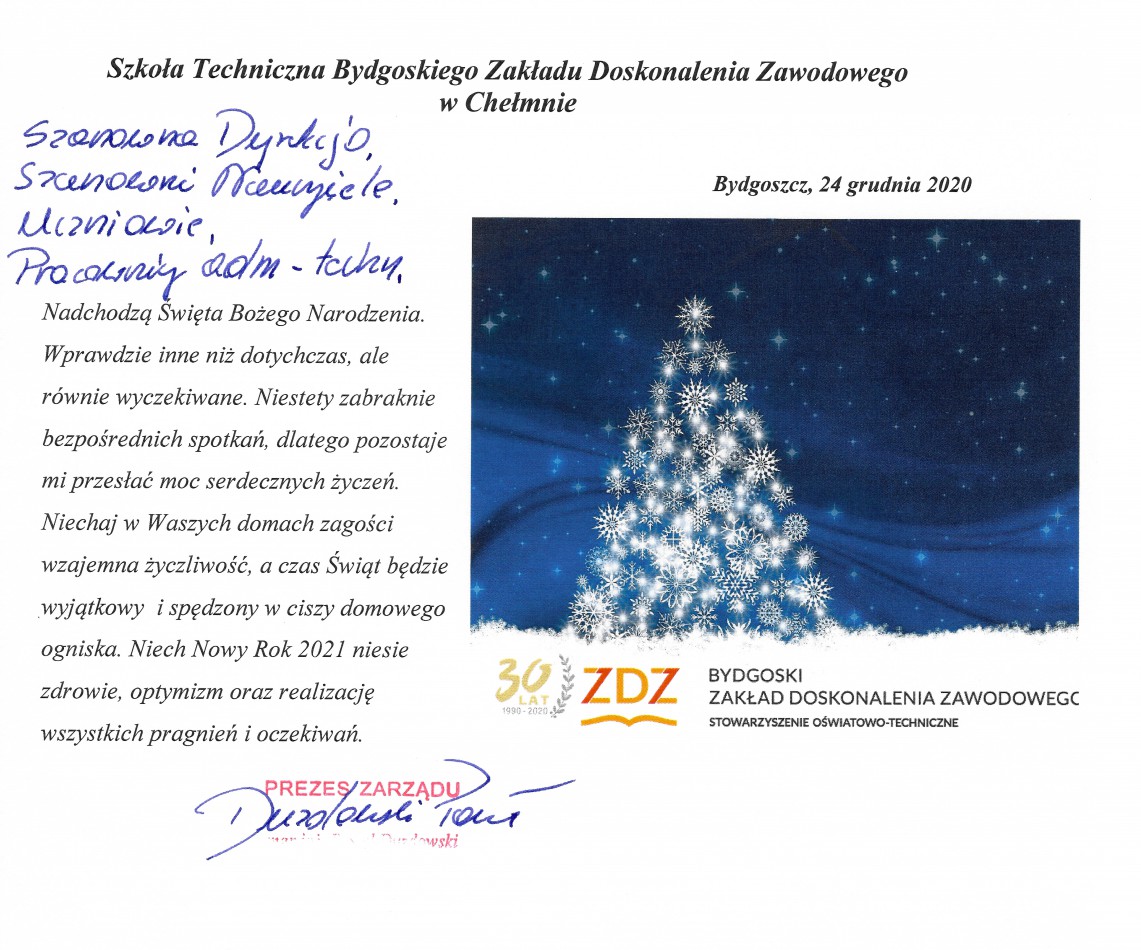 Z tej okazji Pani Dyrektor Mirosława Murawska oraz Prezes BZDZ Paweł Duzdowski przekazują świąteczne życzenia.