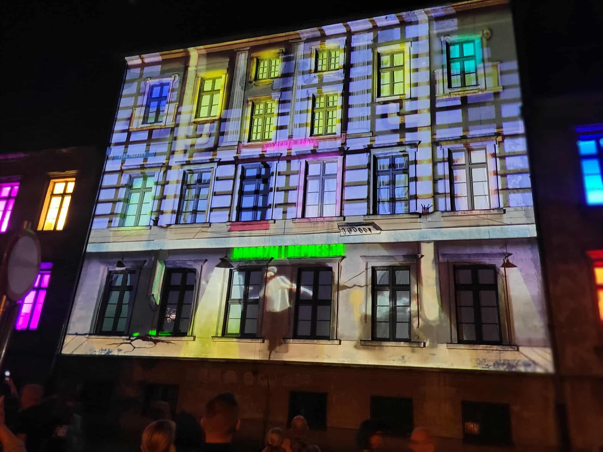 Poznajecie? Tak, to budynek naszej szkoły w nowej pięknej odsłonie podczas odbywającego się w Chełmnie w ostatni weekend sierpnia Festiwalu Światłoczuły. Kolorowe światła cudownie rozświetliły w ciemności frontową ścianę szkoły i zaskoczyły artystyczną instalacją opowiadającą o odwiecznym problemie nierówności społecznych. Podziwiajmy ten wspaniały projekt!