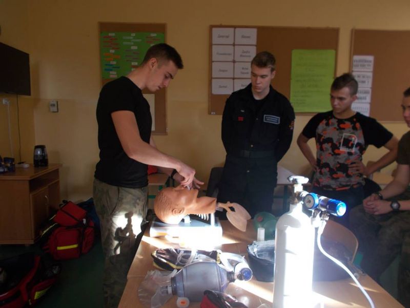 Kurs Kwalifikowanej Pierwszej Pomocy Pełnoletni uczniowie klasy naszej szkoły biorą udział w Kursie Kwalifikowanej Pierwszej Pomocy. Zajęcia odbywają się w soboty i zakończą się uzyskaniem certyfikatu, który wymagany jest do pracy w służbach mundurowych.