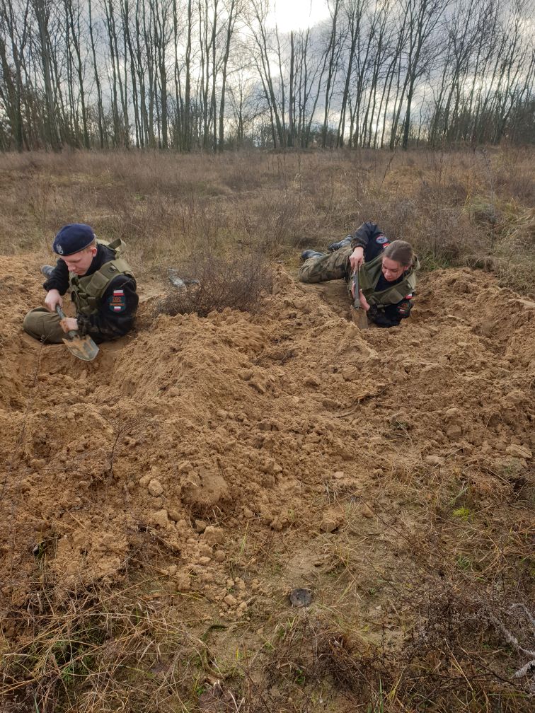– egzamin z okopywania (wykonanie okopów z pozycji leżącej służące do odpierania wroga),