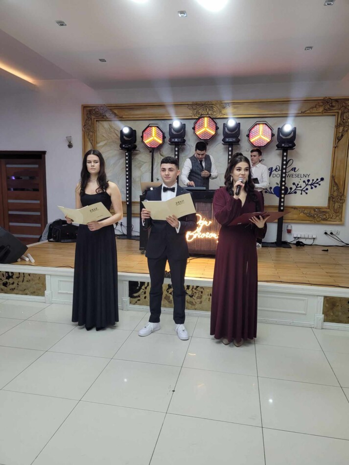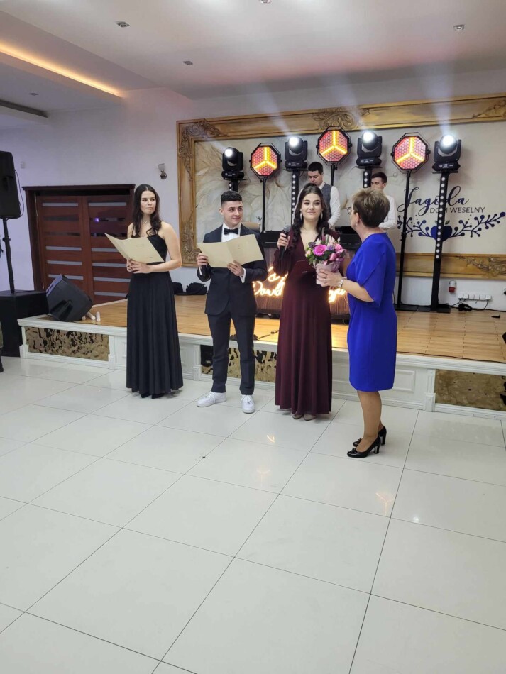 W sobotni wieczór maturzyści z klasy 5T znakomicie bawili się podczas swojej studniówki. Nie brakowało pięknego wykonania tradycyjnego poloneza, życzeń powodzenia na maturze i wzruszających podziękowań, ale nade wszystko królowały wspaniały nastrój i świetna zabawa. Takich cudownych momentów w życiu się nie zapomina:)