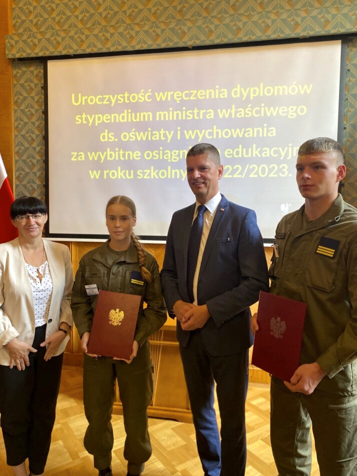 11.10.2023 w Warszawie odbyło się wręczenie dyplomów stypendium Ministra ds. Oświaty i Wychowania za wybitne osiągnięcia edukacyjne w roku szkolnym 2022/2023. Województwo kujawsko – pomorskie reprezentowało dwoje uczniów naszej szkoły Kinga Lonser i Marcel Gaszkowski, którzy uzyskali wysokie wyniki we współzawodnictwie sportowym na szczeblu krajowym i międzynarodowym.