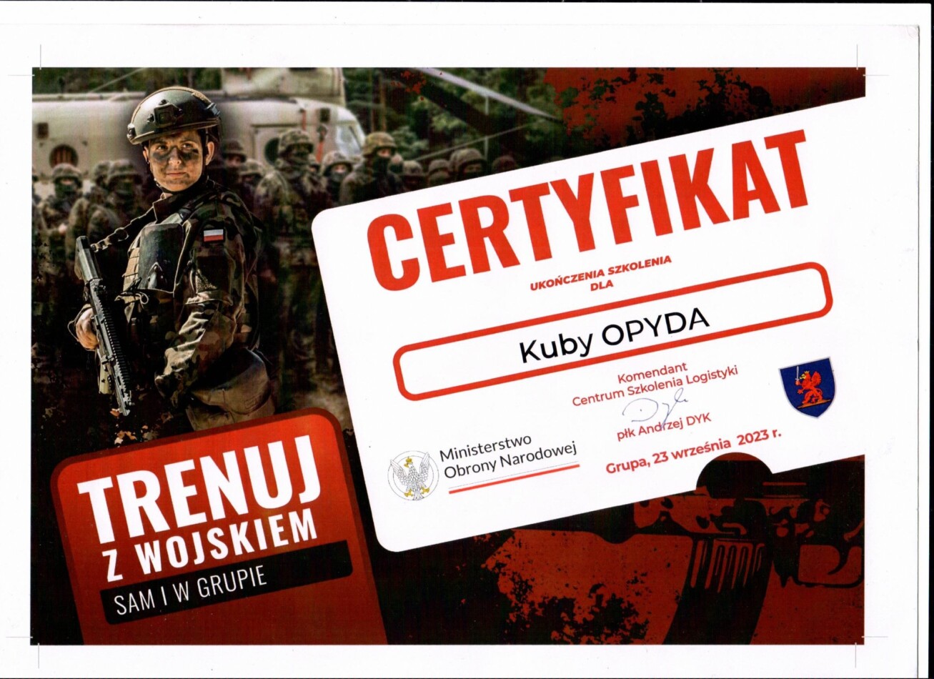 Po ukończeniu szkolenia certyfikaty otrzymali Jakub Opyd, Mikołaj Linkowski, Jakub Bielówka i Oskar Baranowski. Gratulujemy zaangażowania!