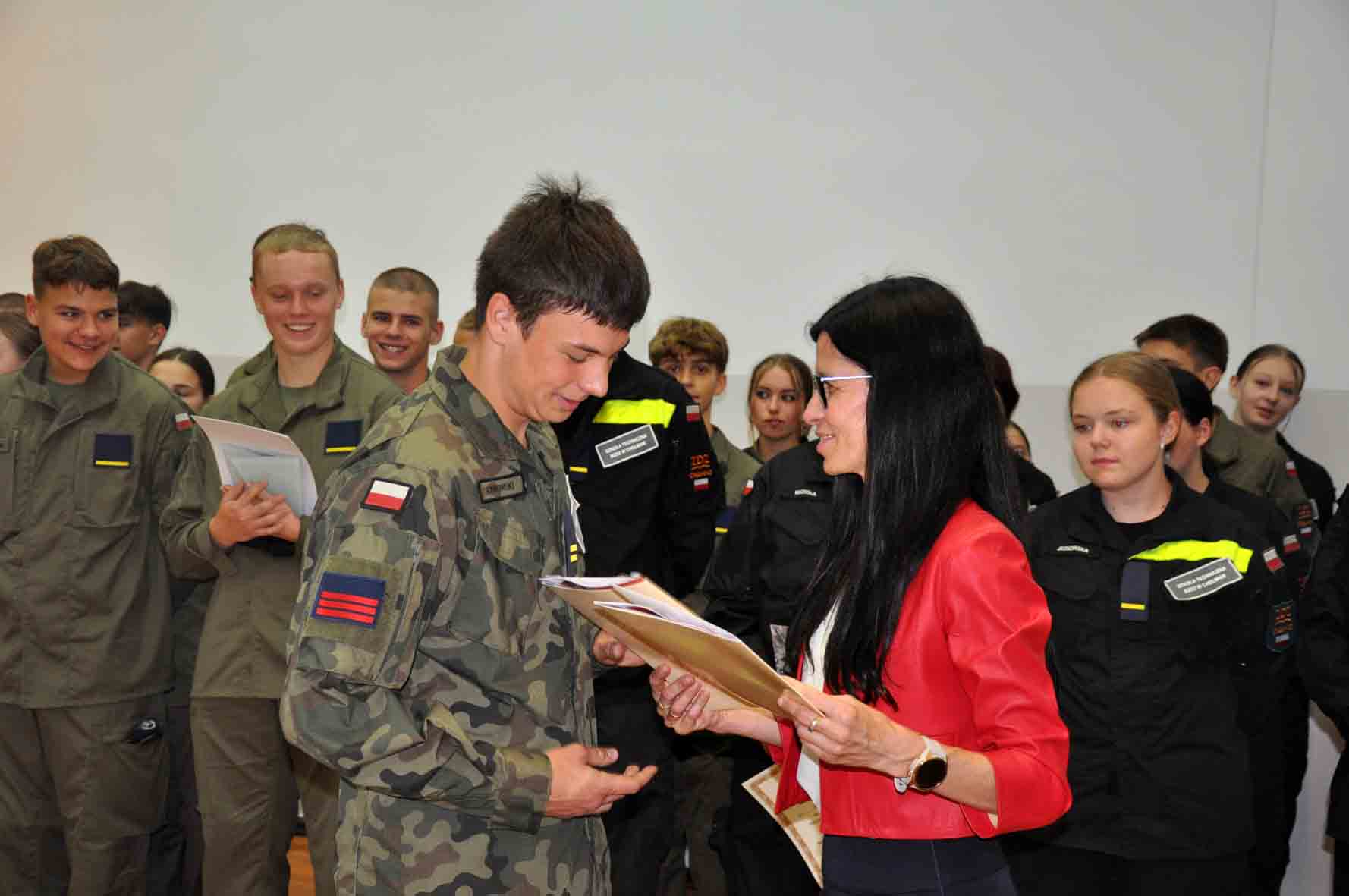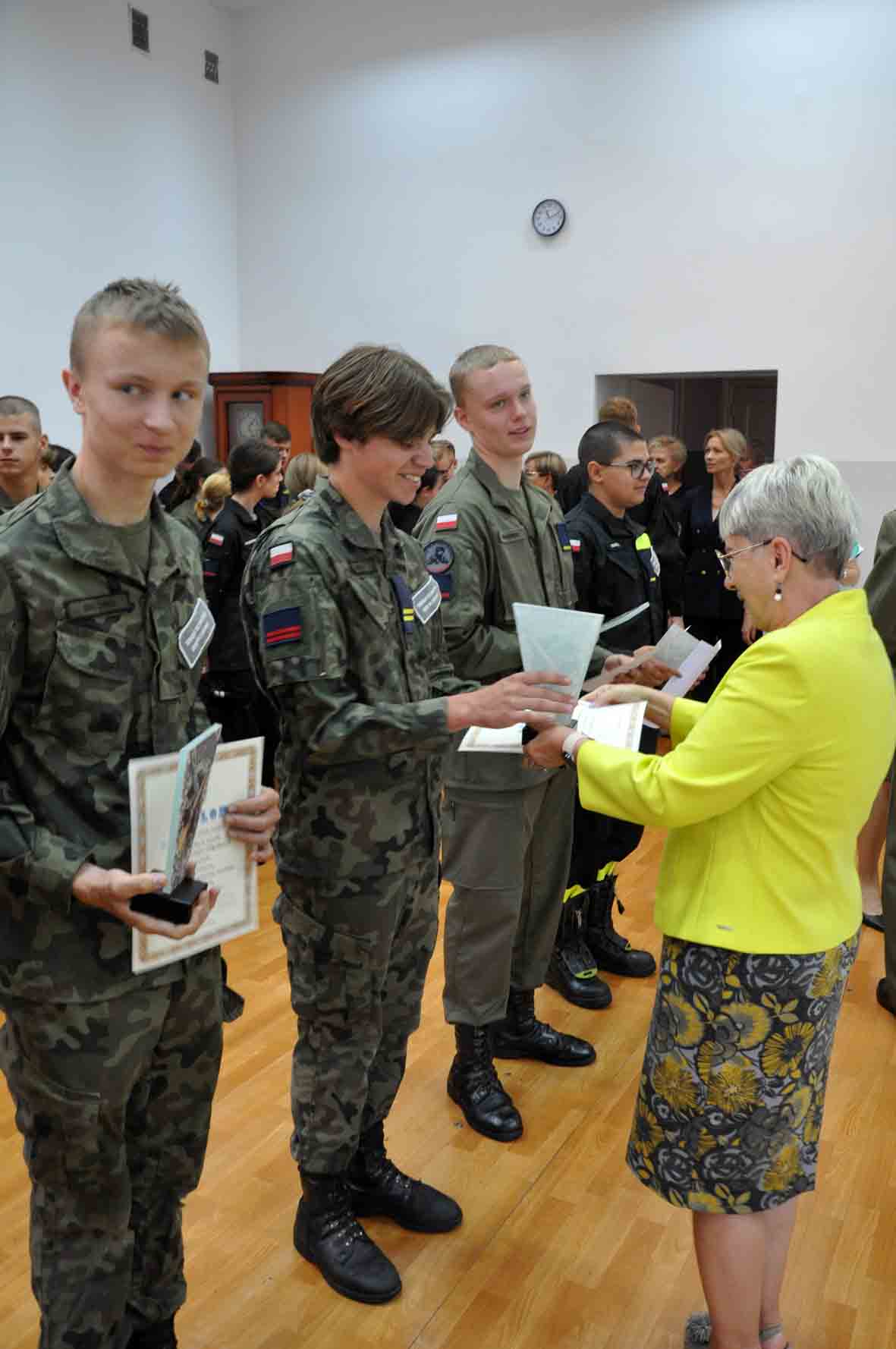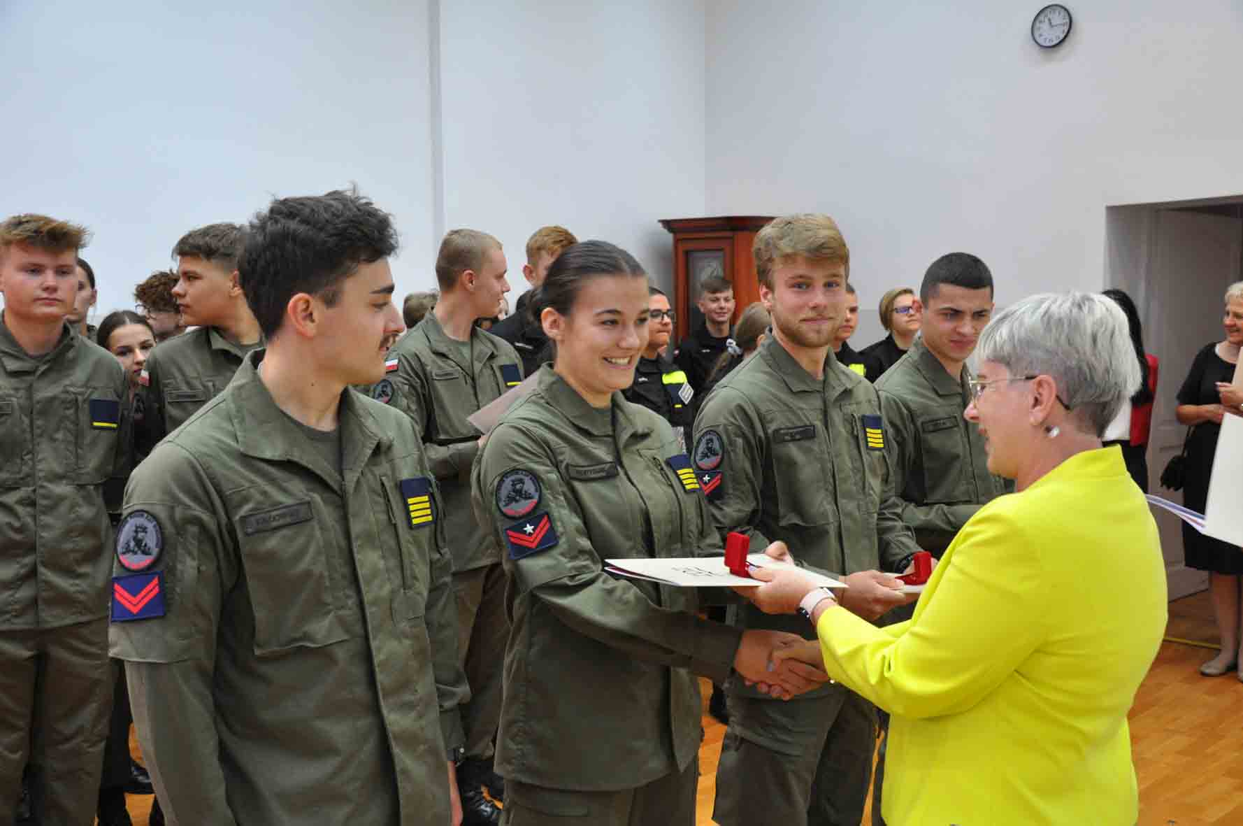 Wreszcie nadszedł długo oczekiwany dzień zakończenia kolejnego roku szkolnego. Wręczenie świadectw odbyło się w uroczystej atmosferze przemówienia Pani Dyrektor i odczytania listu Prezesa BZDZ. Po raz pierwszy zostały nadane odznaki Wzorowy Kadet. Otrzymali je Hubert Wolak, Maja Andrysiak, Karol Maćkowski oraz Maciej Kałdowski.