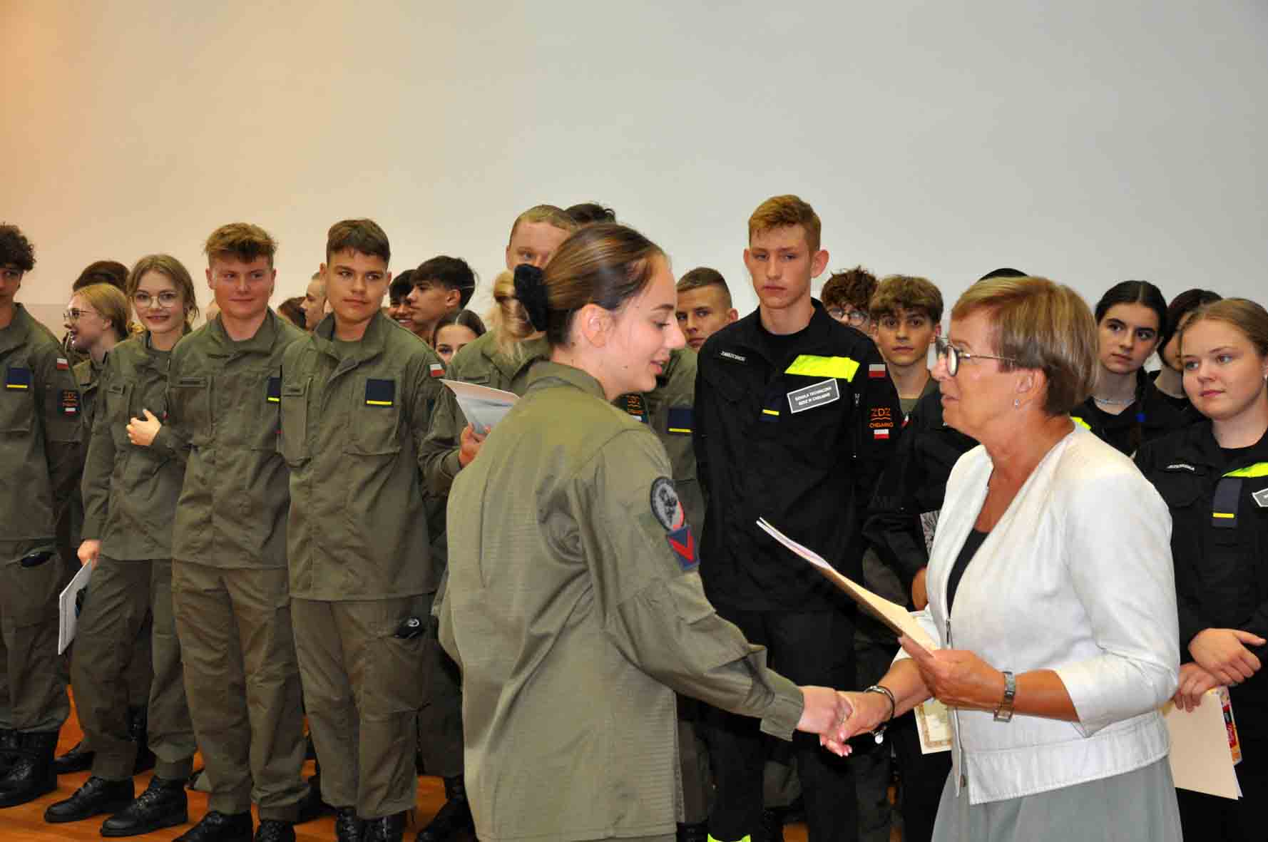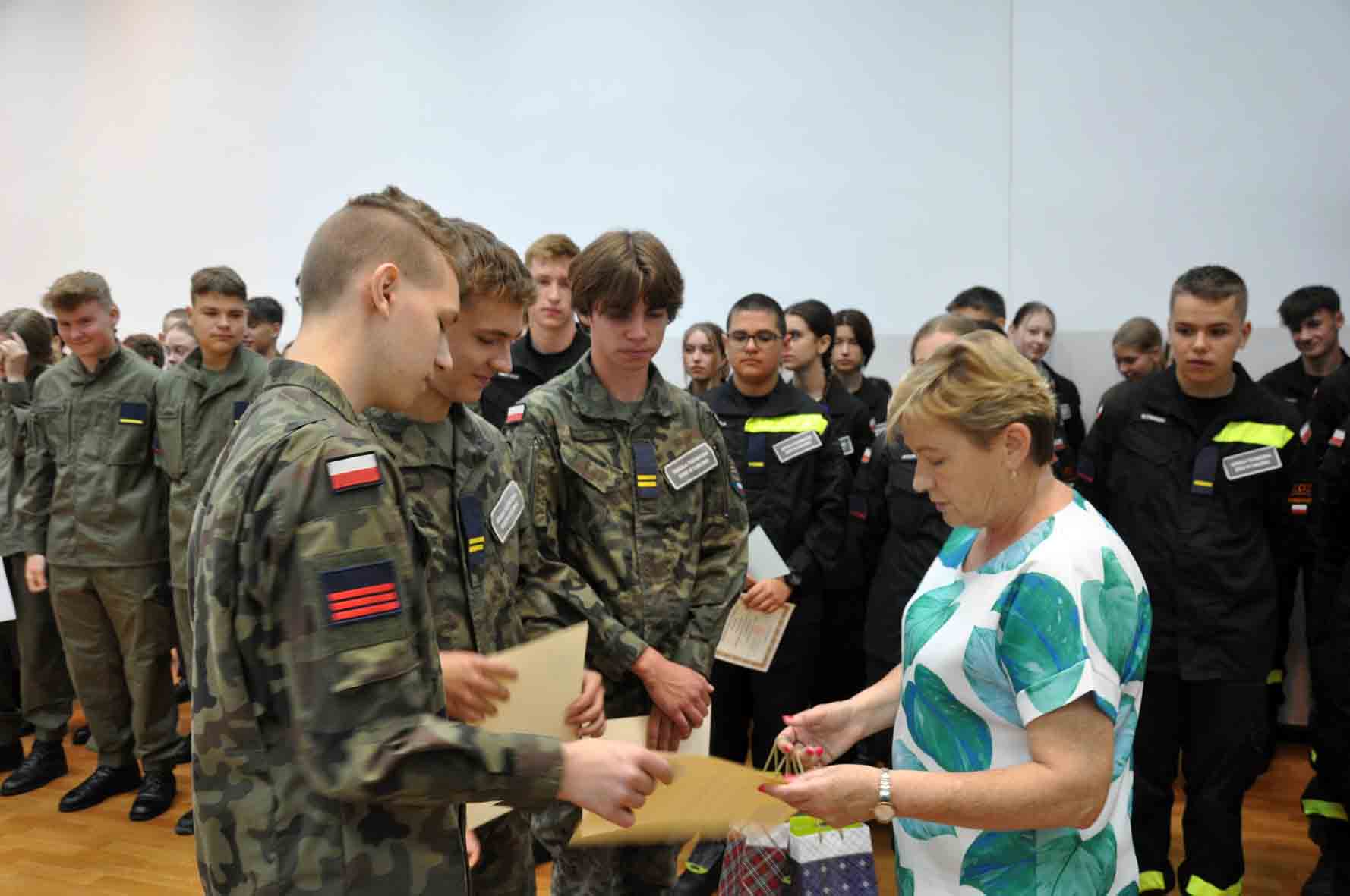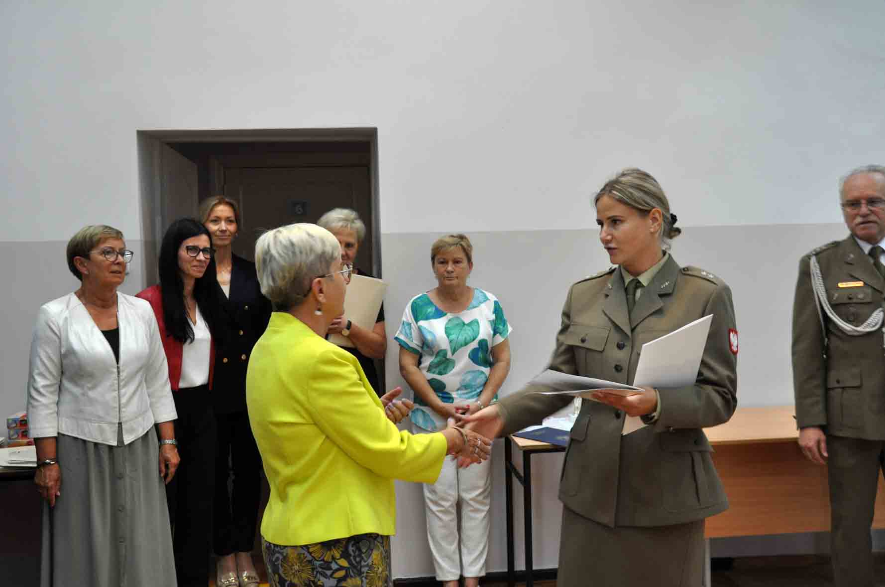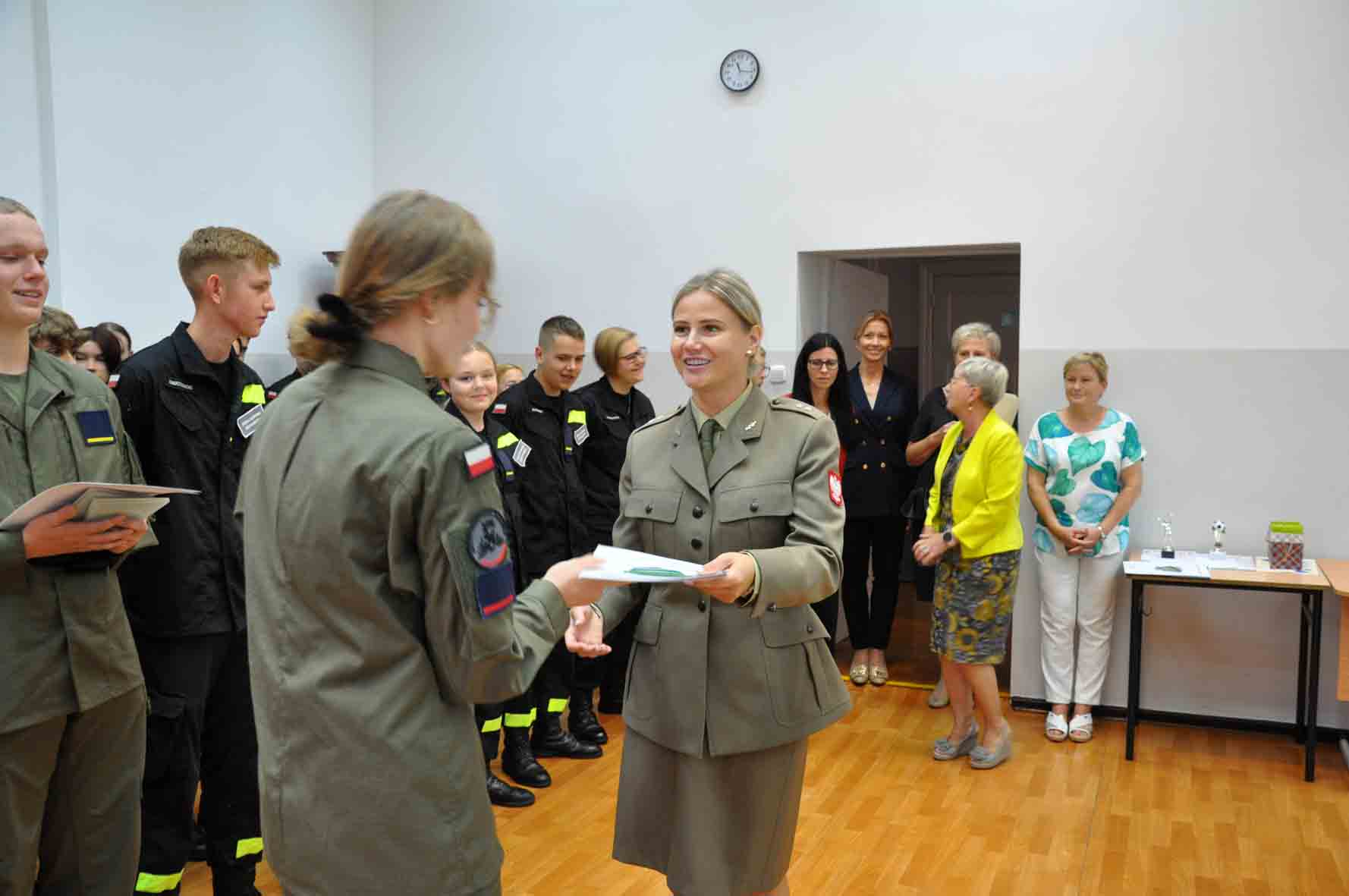 Wreszcie nadszedł długo oczekiwany dzień zakończenia kolejnego roku szkolnego. Wręczenie świadectw odbyło się w uroczystej atmosferze przemówienia Pani Dyrektor i odczytania listu Prezesa BZDZ. Po raz pierwszy zostały nadane odznaki Wzorowy Kadet. Otrzymali je Hubert Wolak, Maja Andrysiak, Karol Maćkowski oraz Maciej Kałdowski.