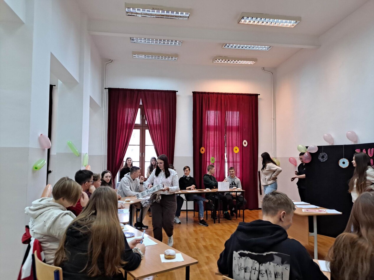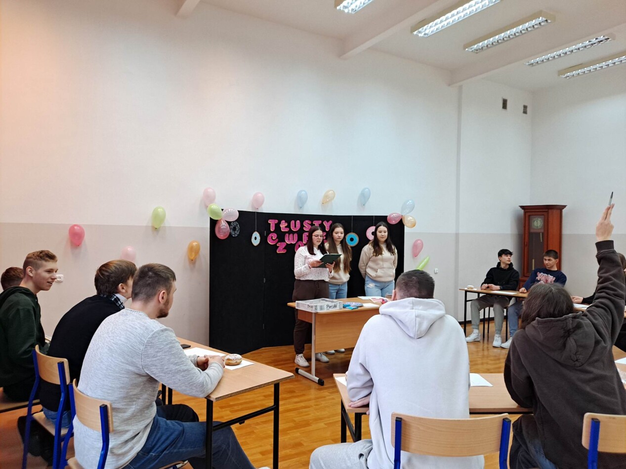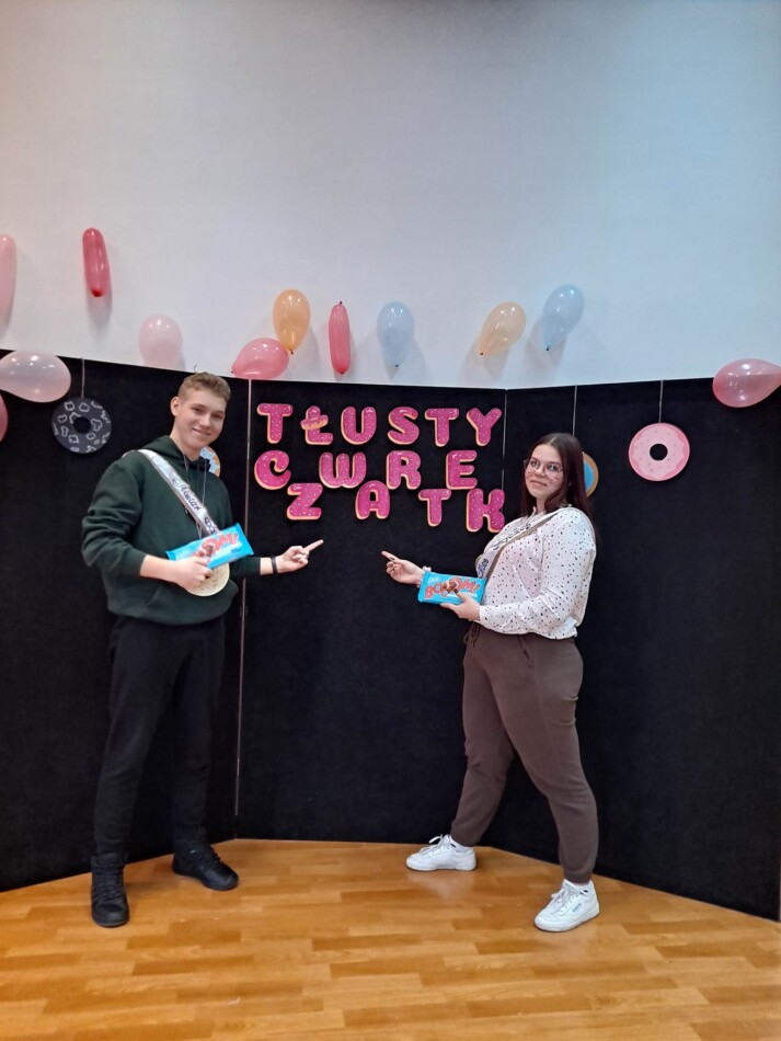 Obchody tłustego czwartku w naszej szkole były smaczne i wesołe, a zadbała o to klasa 2a, organizując ciekawy konkurs, którego zwycięzcą okazała się para znawców tego zwyczaju – Nicol i Szymon z 4t. Reszta uczestników zabawy, zajadając pyszne pączki, również poddała się wesołemu nastrojowi. Wszystkim życzymy smacznego, a następny tłusty czwartek… oczywiście za rok:)