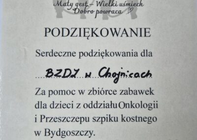 Z wielką radością przekazaliśmy zebrane dary i zorganizowaliśmy świąteczną niespodziankę dla dzielnych pacjentów z Oddziału Onkologii i Przeszczepu Szpiku Kostnego w Bydgoszczy.