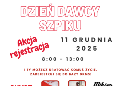 Z okazji Dnia Dawcy Szpiku wspólnie z zaprzyjaźnionymi służbami mundurowymi organizujemy akcję rejestracji do bazy DKMS! To Twoja szansa, by realnie dać komuś życie. Przyjdź i zarejestruj się – to proste i możesz uratować zdrowie i życie!