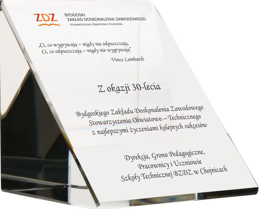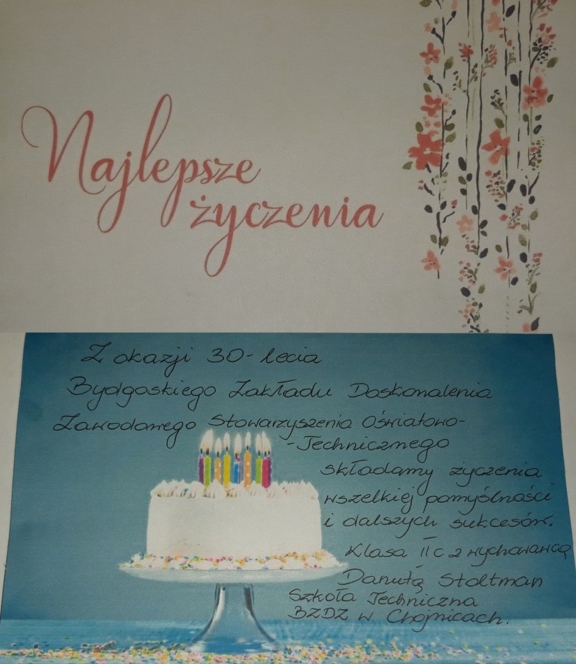Z okazji 30 – lecia Bydgoskiego Zakładu Doskonalenia Zawodowego Stowarzyszenia Oświatowo – Technicznego składamy najserdeczniejsze życzenia kolejnych sukcesów, realizacji zamierzonych celów oraz wiary w lepsze jutro –