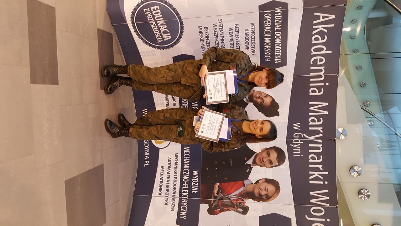 W piątek 9 grudnia odbył się etap drugi (etap okręgowy) Olimpiady Wiedzy o Bezpieczeństwie i Obronności w Akademii Marynarki Wojennej w Gdyni. W gronie zakwalifikowanych 71 osób z okręgu. Nasze dwie uczennice z klasy IIa Patrycja Gołuńska i Klaudia Gwizdała reprezentowały naszą szkołę. Dziewczyny niestety nie dostały się do ostatniego etapu, który odbędzie się w Warszawie.Jesteśmy z nich bardzo dumni, że dotarły do etapu okręgowego tym bardziej, że jest to PIERWSZA EDYCJA tej olimpiady. AMW w Gdyni zapewniło dużo atrakcji takich jak: