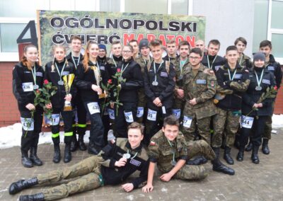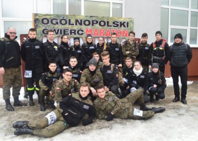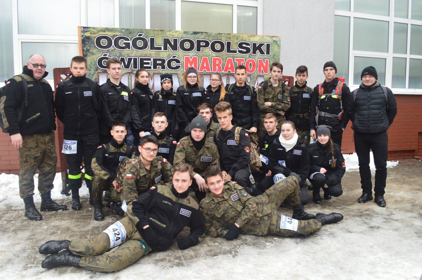 Grupa 22 uczniów z naszej szkoły wzięła udział w „Ćwierćmaratonie Komandosa”, który odbył się 20.01.2018r. w Czarnem. Młodzież rywalizowała z zawodowymi formacjami mundurowymi oraz 6 szkołami z całej Polski na dystansie blisko 11 km. W klasyfikacji dziewcząt (zespołowo) zajęliśmy 2 miejsca na podium. W klasyfikacji szkół – 1 miejsce zajęła Wiktoria Przerada, natomiast 3 miejsce wywalczyła Wiktoria Pałubicka. Nasza szkoła wyróżniła się w szczególny sposób, gdyż jako jedyna ze szkół mundurowych biegła z plecakami ważącymi minimum 10kg. Ucznie walczyli do ostatnich metrów. Gratulujemy naszym uczniom ukończenia biegu.