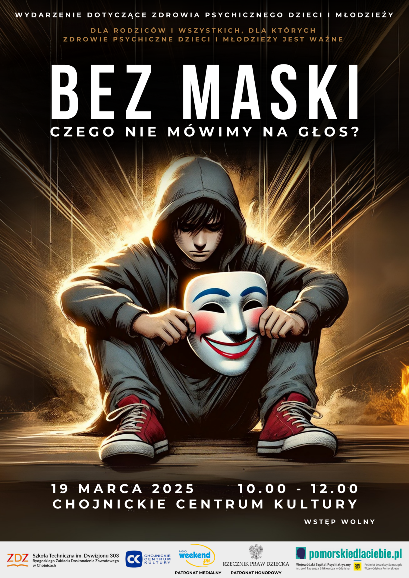 Wydarzenie BEZ MASKI – CZEGO NIE MÓWIMY NA GŁOS? to spotkanie tworzącej to wydarzenie młodzieży z naszej szkoły oraz gości – osób dorosłych.