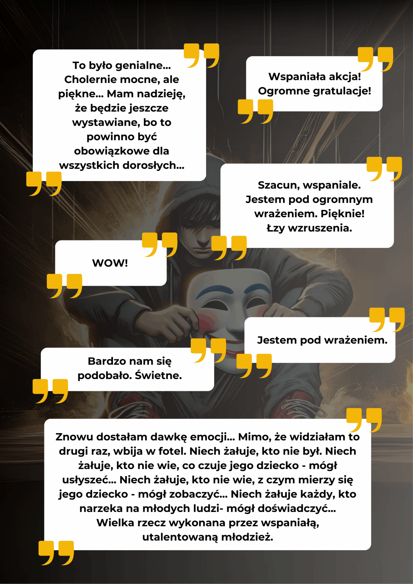 21 maja 2025 r. w Chojnickim Centrum Kultury odbyła się druga odsłona wydarzenia 'Bez maski – o czym nie mówimy na głos?’. Dziękujemy wszystkim za udział i za tak pozytywne opinie!