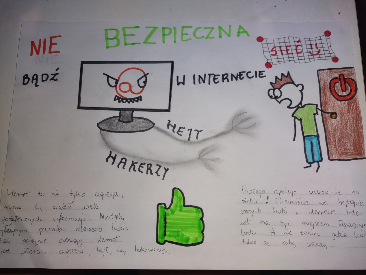 Nasi uczniowie wykonali plakaty, które poruszają tematykę bezpieczeństwa w sieci