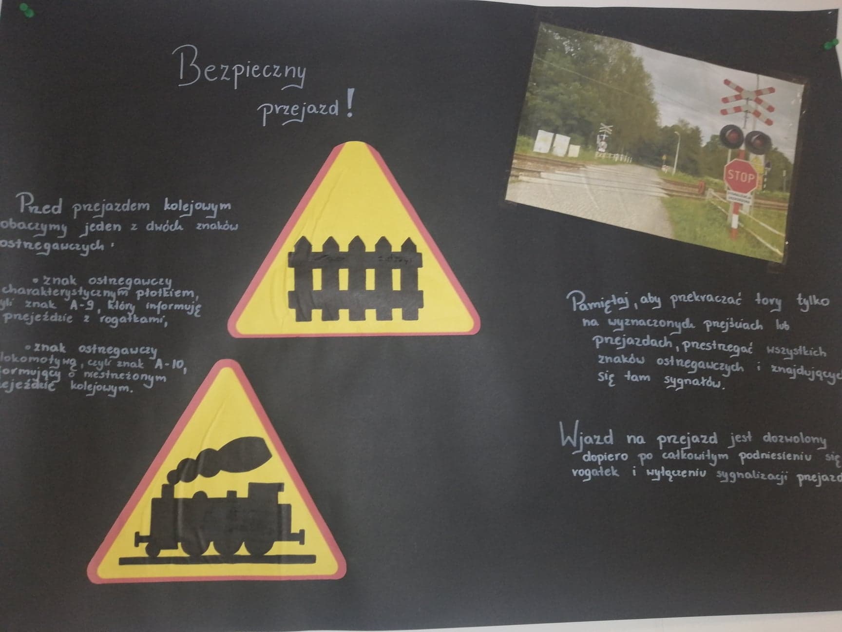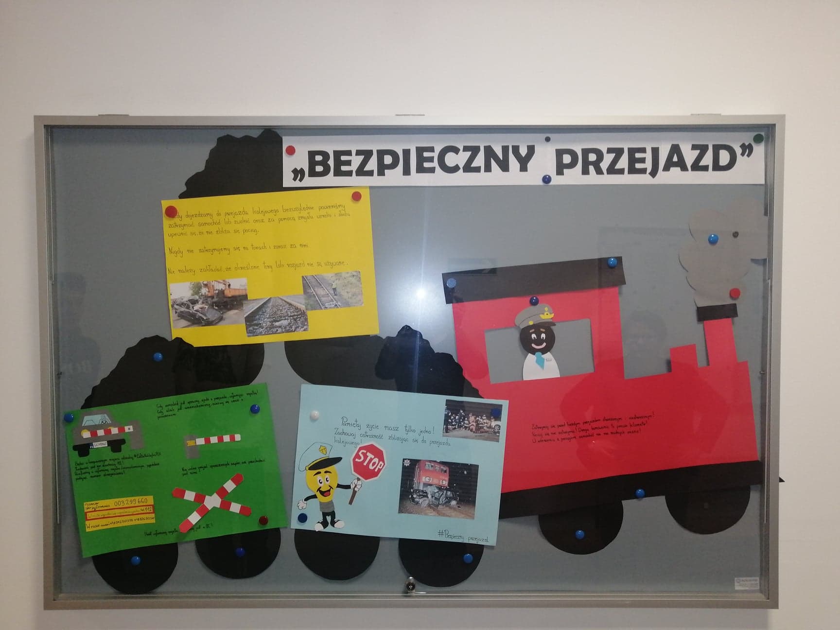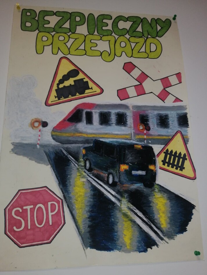 Bierzemy udział w konkursie „Bezpieczny przejazd”. Prace nad wszystkimi zadaniami jeszcze trwają, ale już możemy pochwalić się ich pierwszymi efektami. Oto plakaty naszych uczniów traktujące o bezpieczeństwie na przejazdach kolejowych.