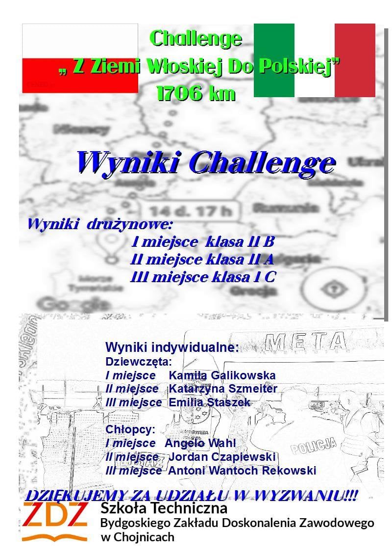 Zakończyliśmy biegowe wyzwanie „Z Ziemi Włoskiej Do Polskiej”. Celem było wspólne przebiegnięcie 1706 km, czyli odległości dzielącej Chojnice i Rzym. Po zsumowaniu wyników wszystkich uczestników okazało się, że łączny wynik wyniósł aż 2209,5 km!