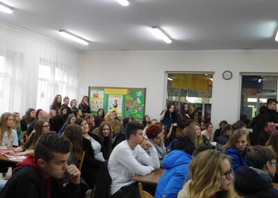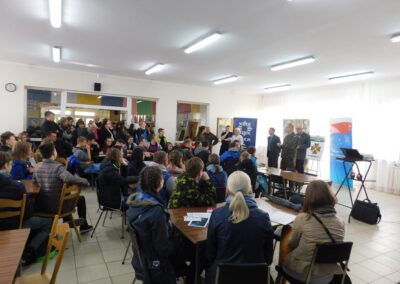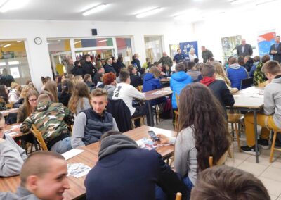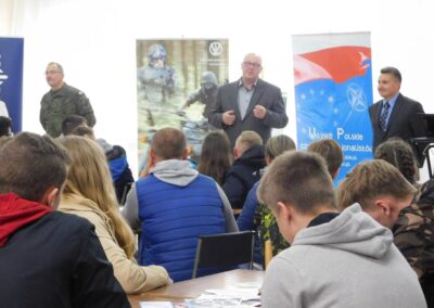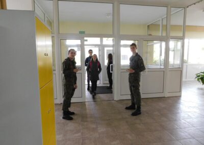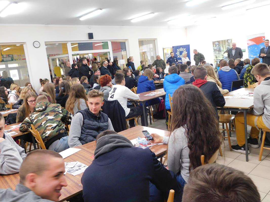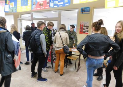 Dyrekcja szkoły, Policja oraz samorząd szkolny zadbali o odpowiednią promocję i reklamę w trakcie tak licznego spotkania. Wszyscy chętni mogli zapoznać się z panującą tam atmosferą i specyfiką funkcjonowania w strukturach technikum klas mundurowych.