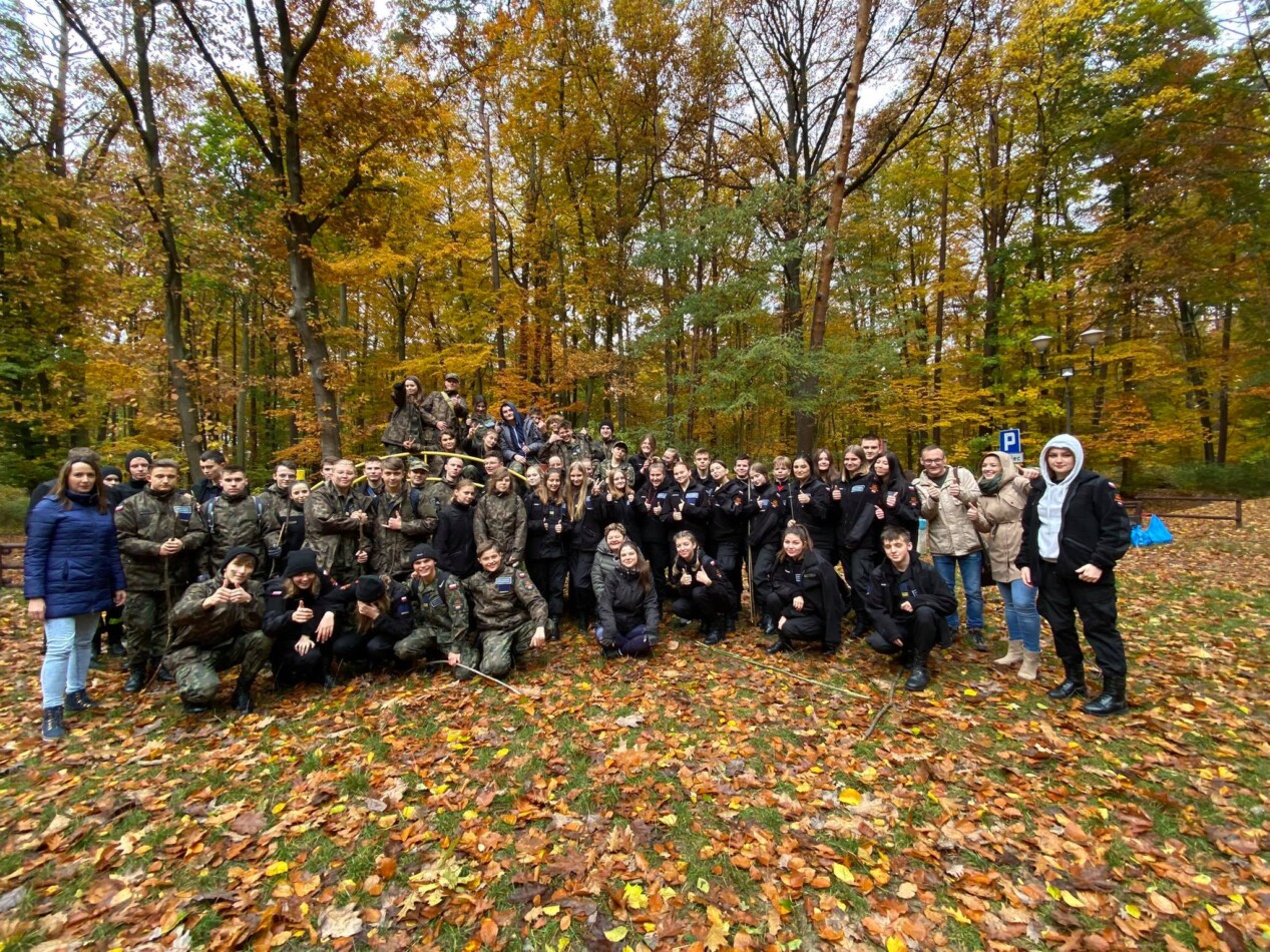 26 i 27 października 2021 r. z inicjatywy Samorządu Uczniowskiego uczniowie klas II i III mieli okazję uczestniczyć w zajęciach zorganizowanych na terenie Lasku Miejskiego. Lekcja podzielona była na trzy bloki tematyczne: geografia – praca z mapą topograficzną, kompasem i odbiornikiem GPS, działania proekologiczne – sprzątanie lasku, segregacja odpadów, zajęcia profilowe – przeszukiwanie terenu. Zadania przygotowali nauczyciele: Katarzyna Jażdżewska (geografia), starszy chorąży Marcin Janiak i asp. sztab. Dariusz Piekarski (zajęcia profilowe). Celem wyprawy były nie tylko kwestie wynikające z podstawy programowej, ale także integracja młodzieży połączona z aktywnością fizyczną na świeżym powietrzu. Całość zakończona została wspólnym ogniskiem. Nie zabrakło też gry na gitarze i wspólnego śpiewu.