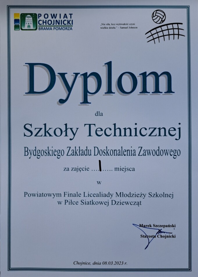 W dniu dzisiejszym w Zespole Szkół w Chojnicach odbył sie Finał Powiatowej Licealiady w Piłce Siatkowej Dziewcząt.