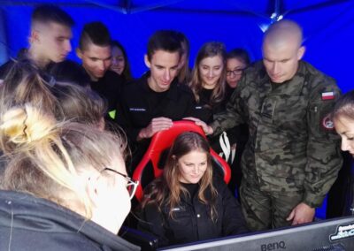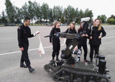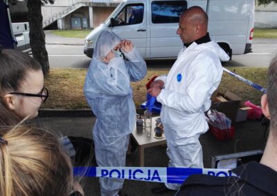 Uczniowie odwiedzili Salę Historii i Tradycji Komendy Wojewódzkiej Policji w Gdańsku oraz strzelnicę. Zaprezentowany został: pokaz przygotowany przez przewodników psów służbowych, pokaz technik interwencji policyjnych, pokaz pierwszej pomocy oraz pokaz sprzętu policyjnego. Uczniowie zapoznali  się z pracą techników kryminalistyki. Na terenie Oddziału Prewencji odbywał się Wojewódzki Konkurs Policjanta Ruchu Drogowego, w którym udział wzięli również nasi uczniowie.