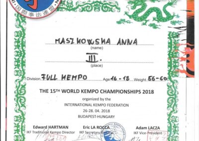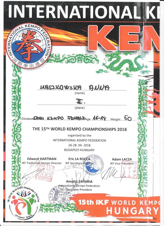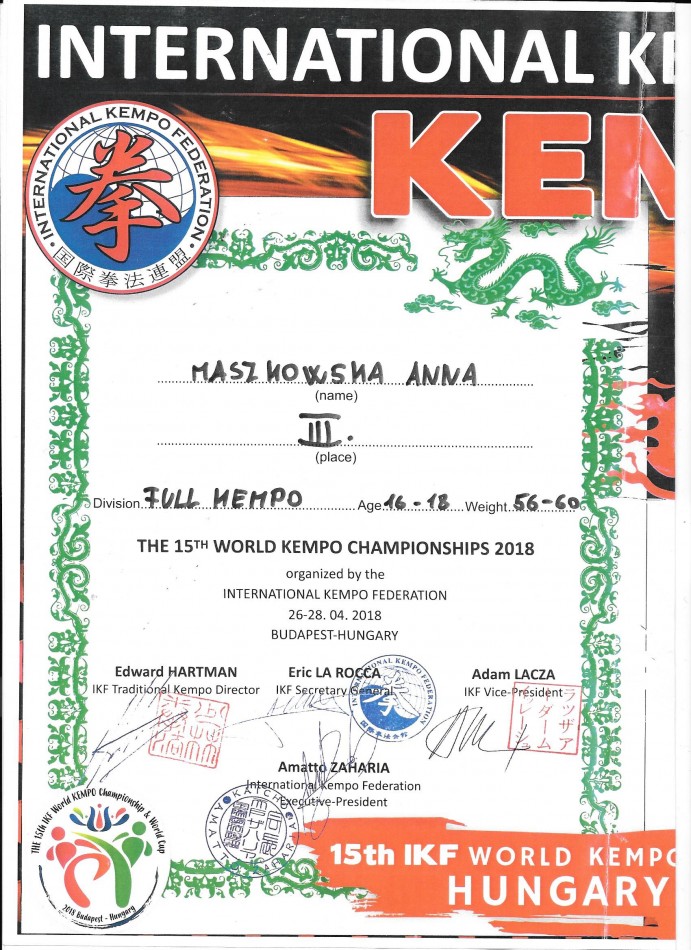 Z ogromną dumą informujemy, że podczas Mistrzostw Świata w sztuce walki Kempo w Budapeszcie uczennice naszej szkoły należące do Uczniowskiego Klubu Sportowego Kempo Chojnice Anna Maszkowska i Wiktoria Przerada zdobyły srebrne i brązowe medale.