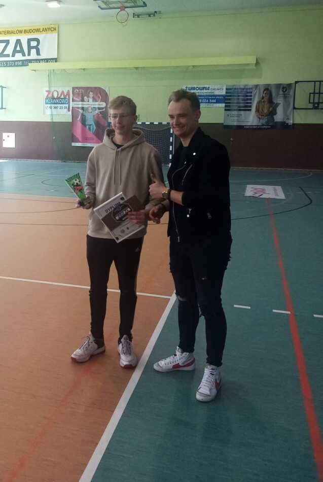 Nasza drużyna zdobyła 🥈 miejsce! 👏👏 Nagroda dla najlepszego zawodnika turnieju trafiła do ucznia naszej szkoły Huberta Pestki z klasy 1a 👏🔥.  Najlepszy bramkarz również był w naszej drużynie i został nim Dawid Patyna z klasy 4c 👏🔥
