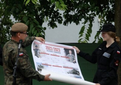 1 września 2022 r. na Placu Flagowym odbyła się uroczysta inauguracja roku szkolnego 2022/2023. Podczas uroczystości gościliśmy służby mundurowe: Pana mjr Tomasza Szcześniak – Zastępcę Dyrektora Zakładu Karnego w Koronowie, Pana bryg. Błażeja Chamier Cieminskiego – Komendanta Powiatowego PSP w Chojnicach, Panią aspirant Katarzynę Dziewięcką – z wydziału prewencji KPP w Chojnicach, Pana mjr Marcina Mróz – zastępcę dowódcy batalionu, szefa sztabu 34 Chojnickiego batalionu radiotechnicznego, Pana mjr Andrzeja Gejda – WCR Człuchów. Po przemówieniu Pani Dyrektor Anny Henszke, starszy chorąży sztabowy Wojciech Gudaczewski z 7 Pomorskiej Brygady Obrony Terytorialnej z Gdańska odczytał list od Ministra Obrony Narodowej Mariusza Błaszczaka. Ministerstwo Obrony Narodowej przygotowało dla Nas multimedialny projekt edukacyjny „Kalendarz z mundurem”. Dowódca szkoły Natalia Wiśniewska złożyła meldunek o gotowości szkoły do uroczystości. Odśpiewano hymn podczas podnoszenia flagi na maszt. Prowadzącym uroczystość byli: Kornelia Lis oraz Wiktor Petrusewicz. Zaproszeni goście życzyli zarówno nauczycielom jak i uczniom wielu sukcesów w nowym roku szkolnym, zachęcali również do pracy w służbach mundurowych. Pożegnaliśmy lato wierszem Tadeusza Kubiaka „ Lato” i przywitaliśmy się ze swoimi wychowawcami w klasach.