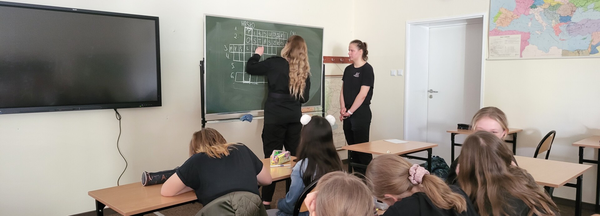 27 kwietnia nasze uczennice – Kamila Galikowska i Sara Kąkolewska (3 b) – w Szkole Podstawowej nr 8 w Chojnicach poprowadziły lekcję historii w ramach konkursu „Policjanci w służbie historii”. Opiekunem był instruktor, emerytowany policjant asp. sztab. Dariusz Piekarski. W spotkaniu uczestniczyli uczniowie V klasy. Oprócz tematu, dziewczyny przedstawiły także prezentację poświęconą aspirantowi P.P. Janowi Kukulskiemu – Żołnierzowi Legionów Polskich, funkcjonariuszowi Policji Państwowej.