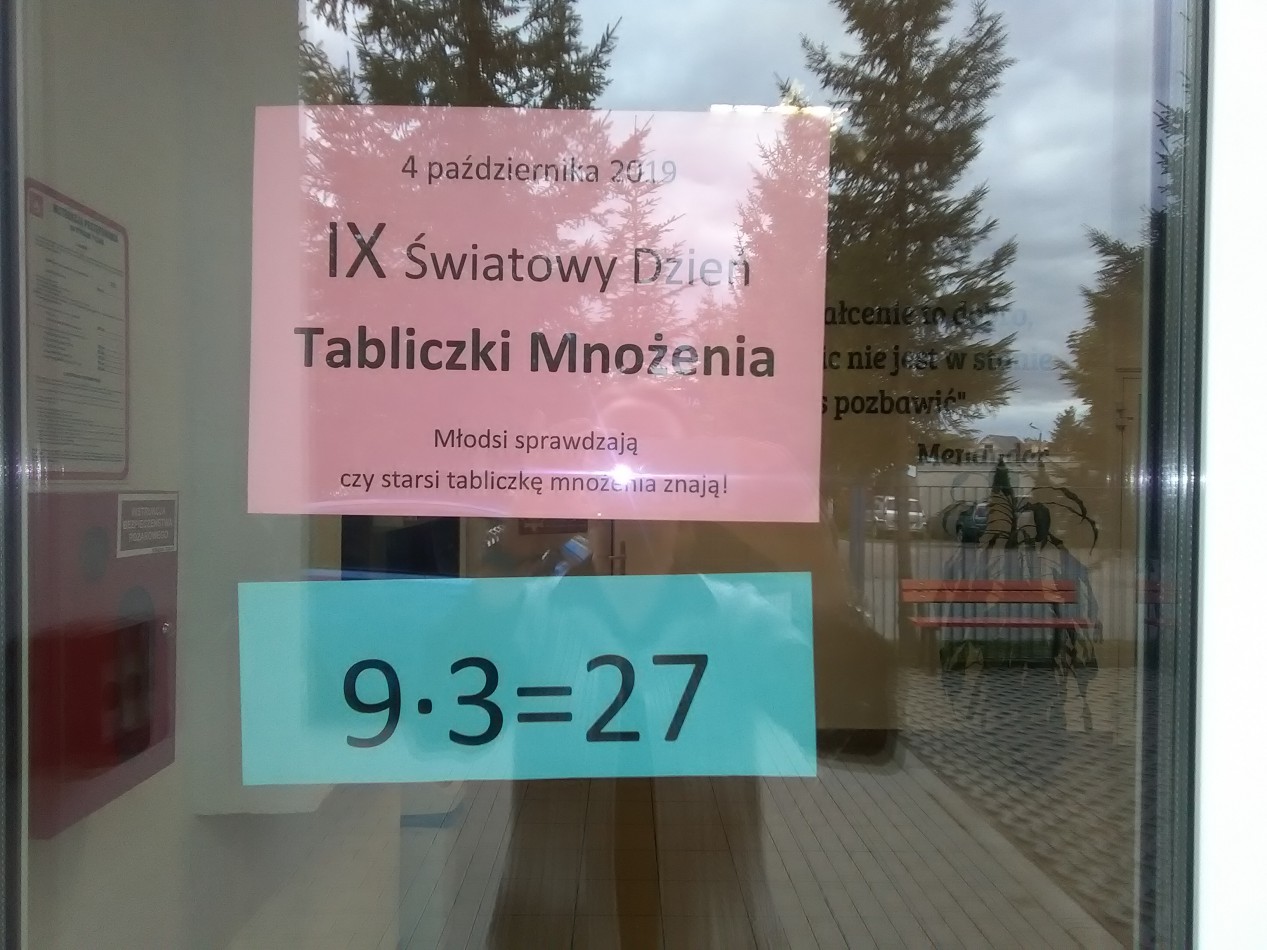 W piątek 4 października 2019 r. obchodziliśmy IX Światowy Dzień Tabliczki Mnożenia. Nasza szkoła również włączyła się do tej akcji.
