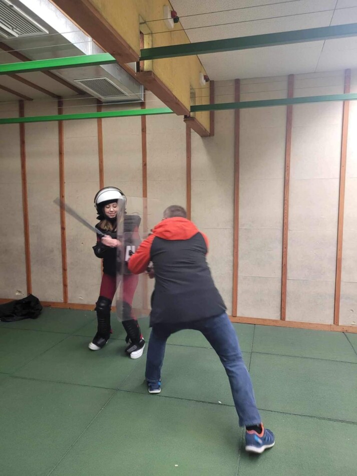 Pierwsza wizyta odbyła się w Komendzie Miejskiej Policji w Sopocie, gdzie policjantka zajmująca się profilaktyką społeczną, pokazała uczniom jednostkę policji. Uczniowie mieli okazję zobaczyć strzelnicę, pomieszczenia dla osób zatrzymanych, a także przymierzyć sprzęt wykorzystywany do działań zwartych przy zabezpieczeniu imprez masowych.