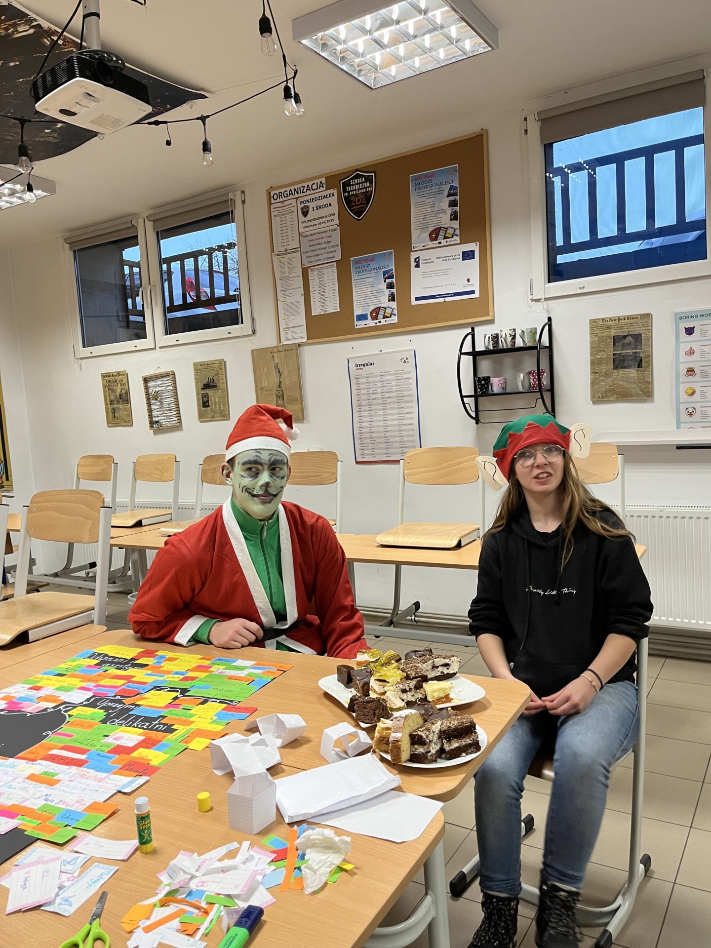 Z okazji Mikołajek w szkole panował Grinch Alert!‼️ Nasz zielony przyjaciel, wspólnie w elfem, robili żarty społeczności szkolnej.