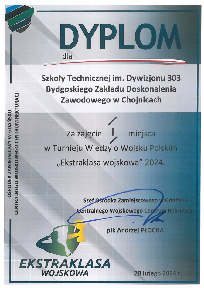 Wojewódzki Międzyszkolny Turniej Wiedzy o Wojsku Polskim pn. „Ekstraklasa Wojskowa” organizowany przez Centralne Wojskowe Centrum Rekrutacji Ośrodek Zamiejscowy Gdańsk